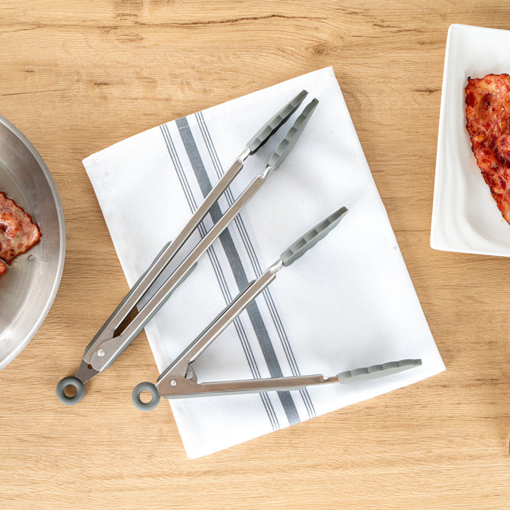 These professional chef tongs are available in two sizes and an array of appealing colors to match individual kitchen aesthetics. Also available as a set of two.