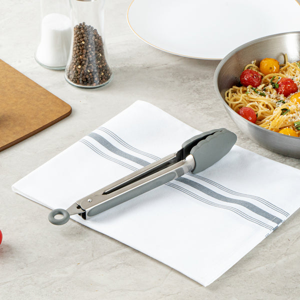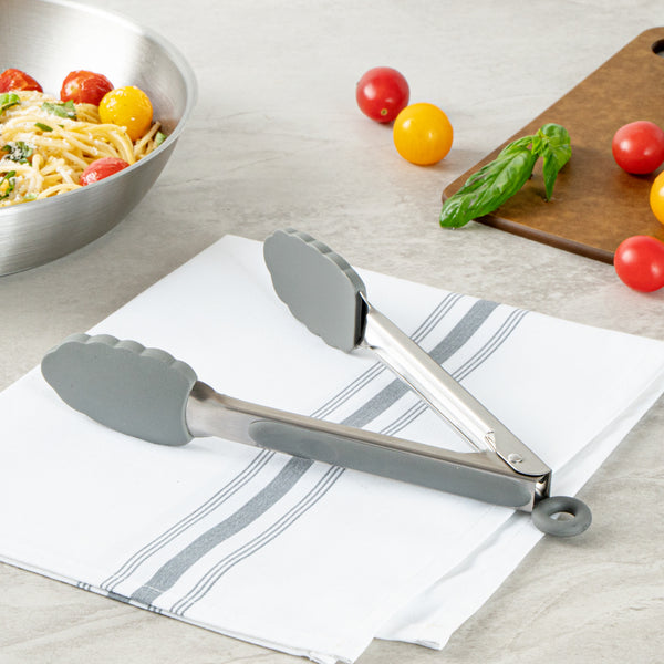 GRAY STAINLESS STEEL KITCHEN TONG - SCALLOPED