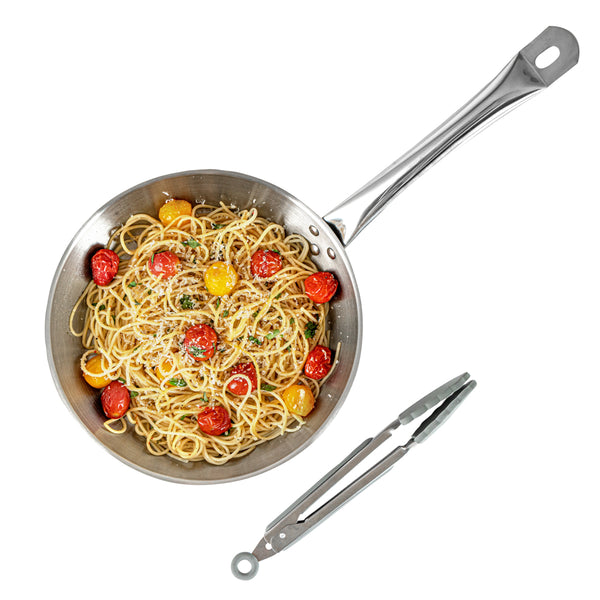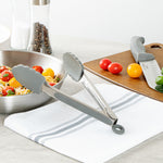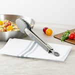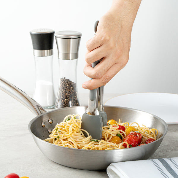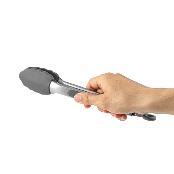 These silicone kitchen tongs feature a stainless steel body with an easy pull lock, making storage a breeze. The sturdy build ensures chores like tossing salad, flipping steaks, and more are managed effortlessly.