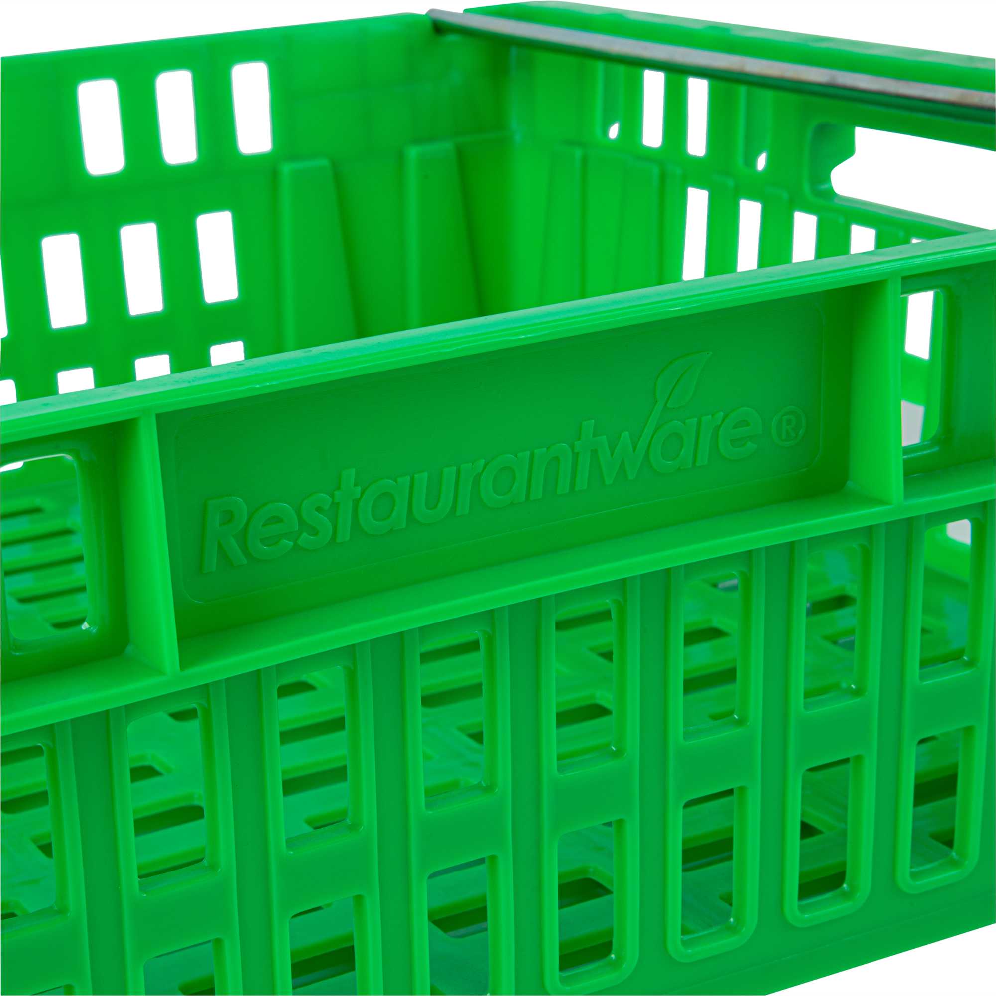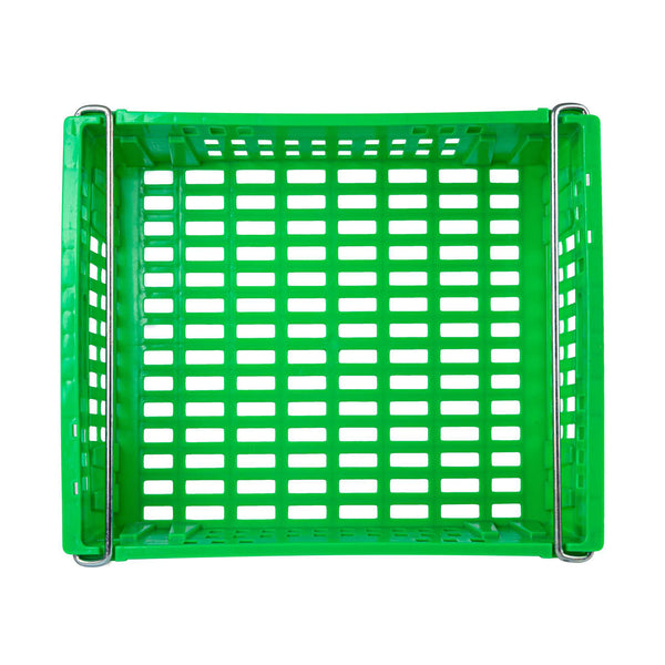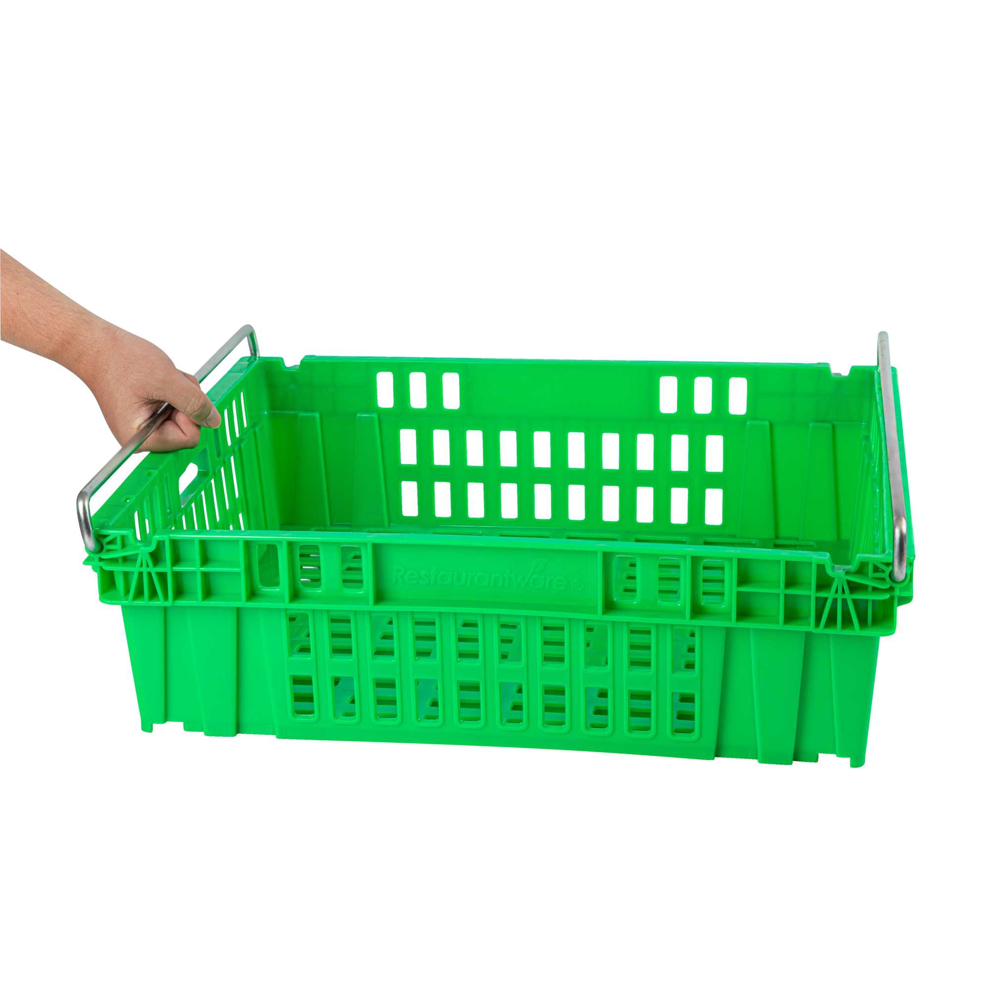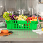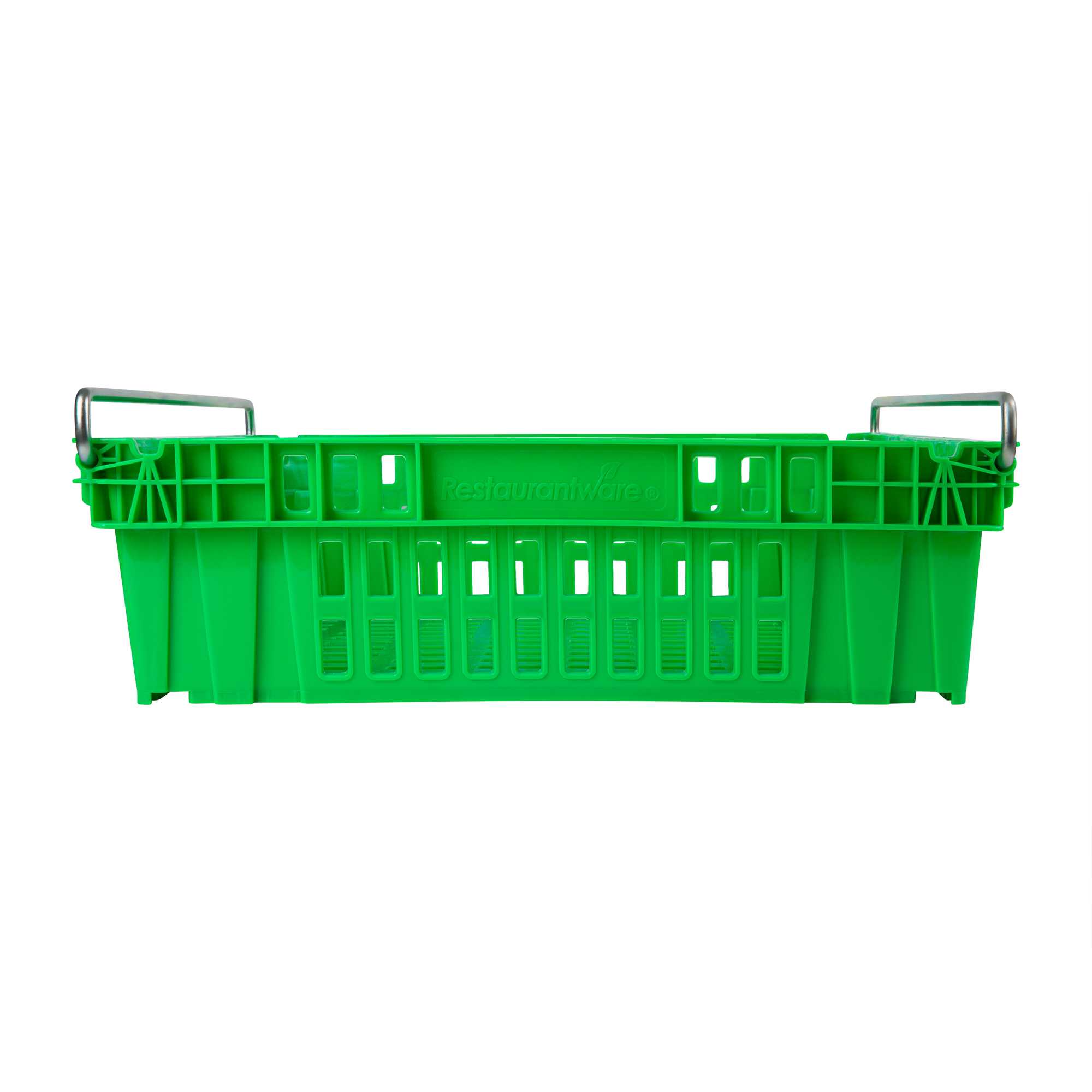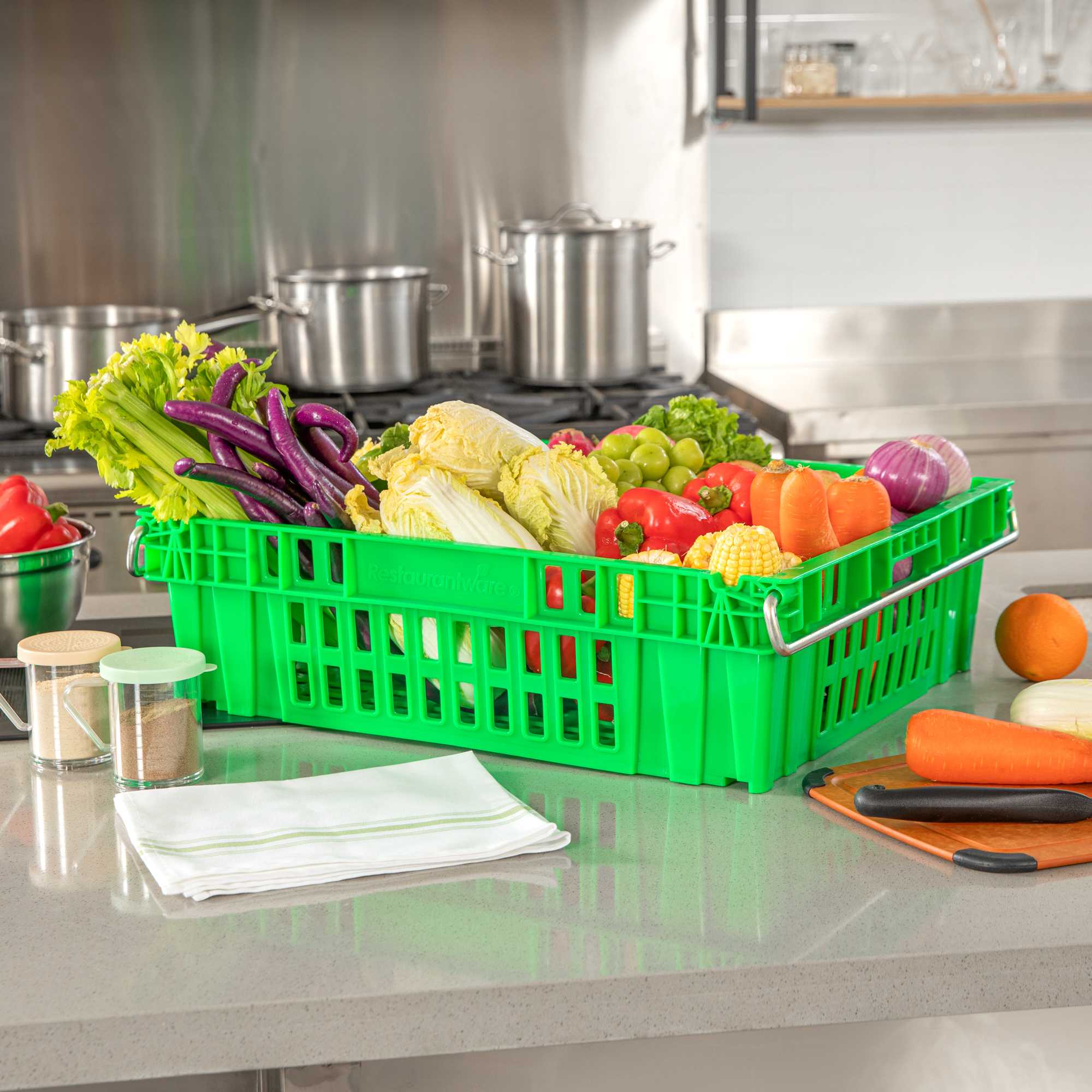 Efficiently cool and store food with ease using this food cooling tray. The Met Lux Stackable Food Cooling Tray, crafted from durable green plastic, measures 23.8 inches in length, 19.6 inches in width, and 7 inches in height, featuring molded hand holds for easy lifting. Its freezer-safe design ensures the freshness of your prepared dishes, making it an ideal meat processing tray in high-moisture settings. The tray's stackable structure maximizes storage space, allowing kitchen staff to organize efficiently without compromising accessibility. Elevate your kitchen's efficiency and organization with this versatile and robust solution. Each order includes 10 Met Lux Stackable Food Cooling Trays.