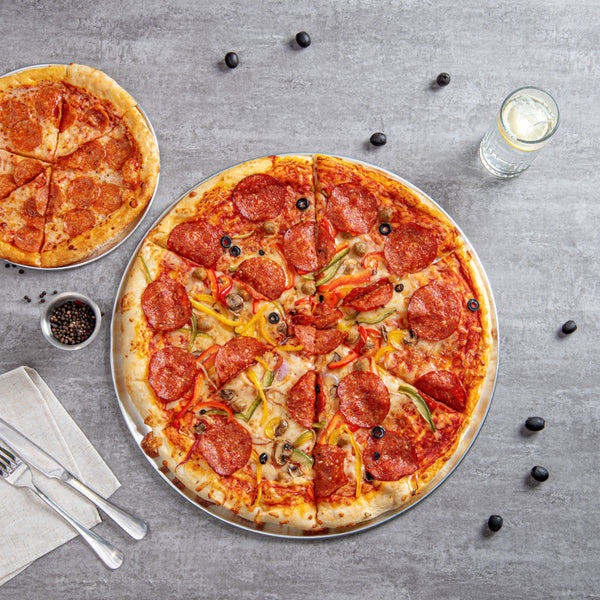 To securely handle dishes and keep them on the tray, these pizza bake pans are built with a rolled-edge design. Don't worry about dropping guests' food!