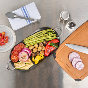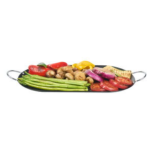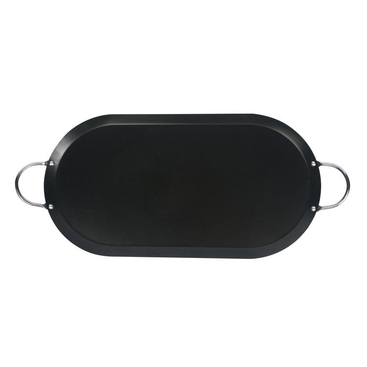 OVAL BLACK CARBON STEEL DOUBLE BURNER GRIDDLE - NON-STICK