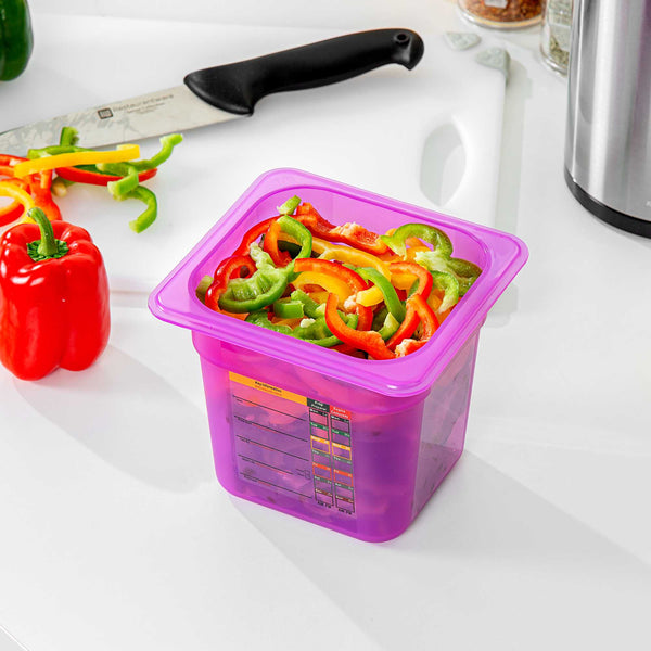 PURPLE ALLERGEN-FREE POLYPROPYLENE 1/6 SIZE FOOD PAN - 6" DEEP