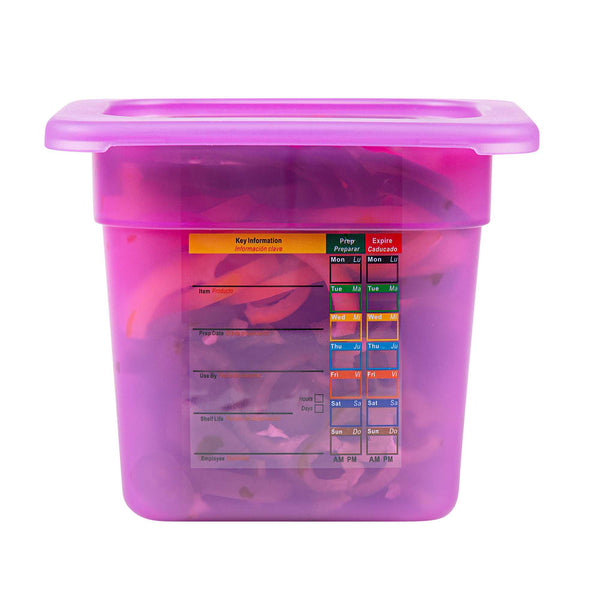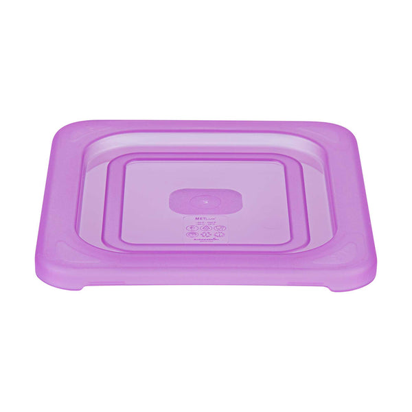 Prevent cross-contamination with color-coded storage solutions. The Met Lux Food Storage Lid – Purple, Plastic – 7 inches by 6.4 inches. With its purple color coding, this food storage lid helps prevent cross-contamination, ensuring a safer kitchen environment. Designed with a polypropylene container cover, it is dishwasher safe, making cleanup quick and efficient, essential for busy foodservice operations. Its stackable feature optimizes storage space, allowing you to maximize your inventory capacity. Made from recyclable plastic, this lid is both environmentally friendly and durable, resistant to stains, and capable of withstanding temperatures. Elevate your kitchen's organization and safety with this recyclable plastic lid. Each order includes 1 Met Lux Food Storage Lid.