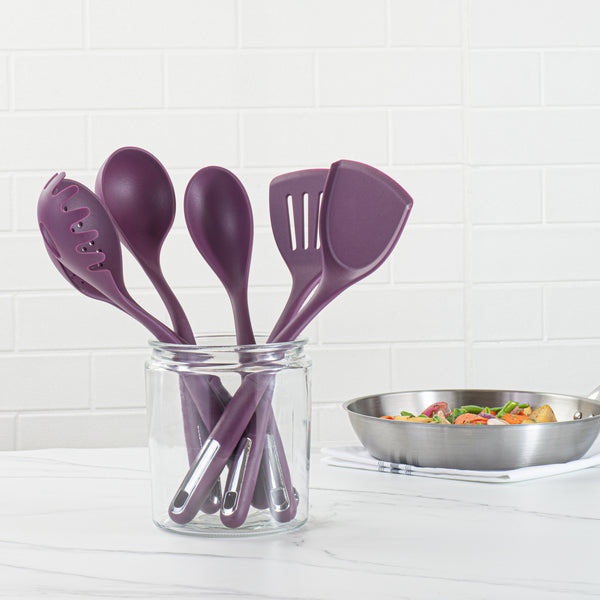 PURPLE SILICONE COOKING UTENSIL SET - 6-PIECE