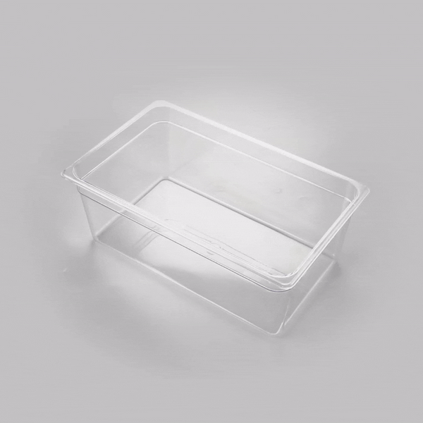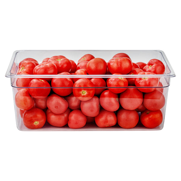 Store your salad ingredients in our Met Lux Rectangle Clear Plastic Full Size Cold Food Storage Containers. With an 8-inch depth, these commercial food storage containers can be filled with a large amount of produce. Designed with quart and liter graduations, these restaurant kitchen containers provide an easy way to monitor inventory. Featuring a transparent finish, these food safe containers clearly display food so you can quickly spot the ingredients you need. Constructed from durable plastic, these rectangle food containers are scratch-resistant and shatterproof to endure everyday use in your busy deli, restaurant, or catering service. Great for chilling foods, these clear plastic food storage containers are freezer-safe and withstand temperatures of -40° to 210° F to conveniently store meat. These commercial food prep containers are dishwasher-safe to streamline your cleaning process during or after service hours. Measuring 20.9 inches in length by 12.8 inches in width by 8 inches in height, these plastic food pans contain up to 27 quarts. Sold in a 10 count box. Lids (SKU: RWT0069) are available and sold separately.