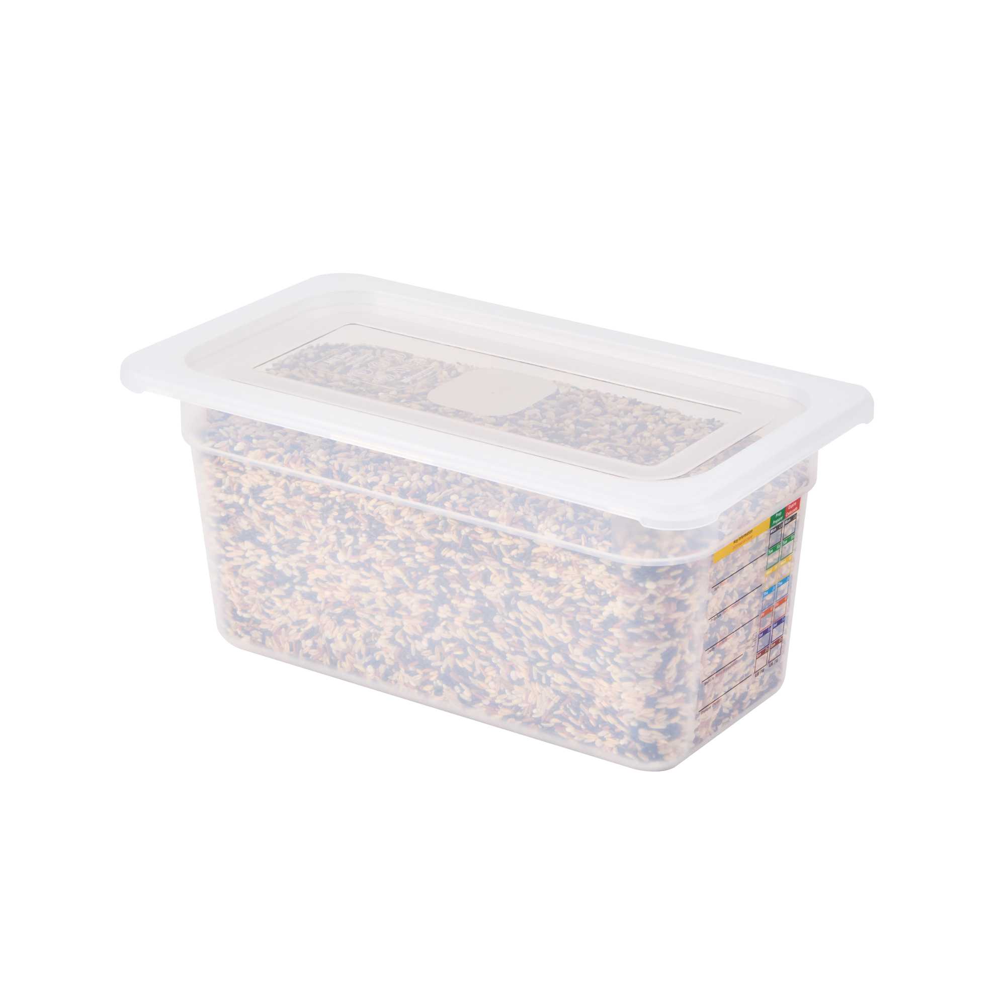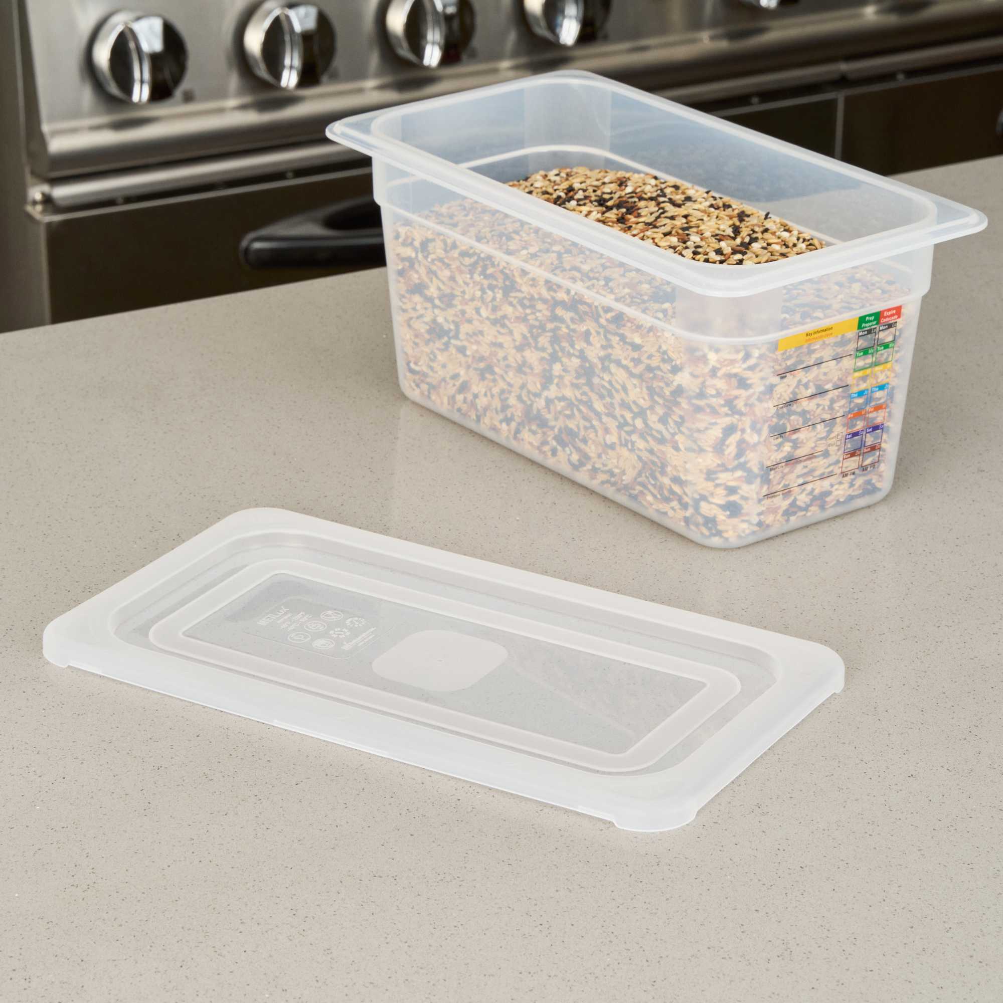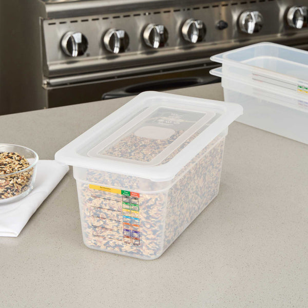 Enhance kitchen efficiency with our versatile clear container lid. The Met Lux Permanent Label Plastic Food Pan Lid, with dimensions of 12.6 inches in length and 7 inches in width, offers a built-in label for reusable food tracking, allowing your staff to record essential details like food type and use-by dates. This feature not only reduces costs by replacing disposable labels but also ensures organization and clarity in food storage. Its square shape maximizes storage space by up to 25%, making it ideal for busy restaurant kitchens and catering services where space optimization is crucial. Made from durable, stain-resistant plastic, this food pan cover maintains a clean appearance and withstands temperatures from -40°F to 203°F, suitable for both hot and cold applications. Additionally, the reusable container lid is dishwasher safe, ensuring quick cleanup and enhanced kitchen productivity. ach order includes 1 Met Lux Permanent Label Plastic Food Pan Lid.