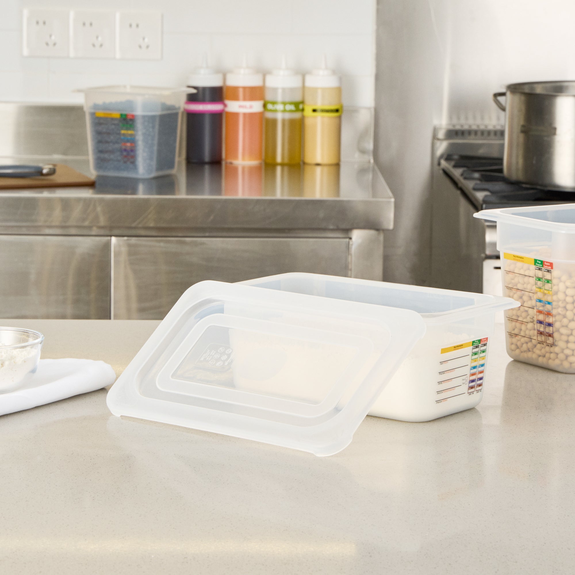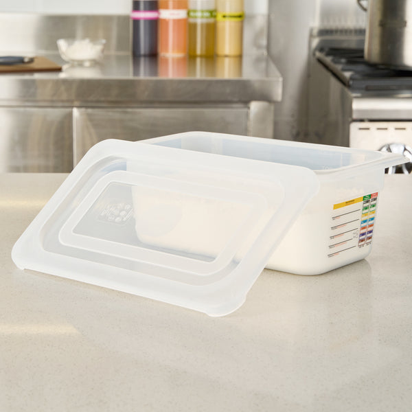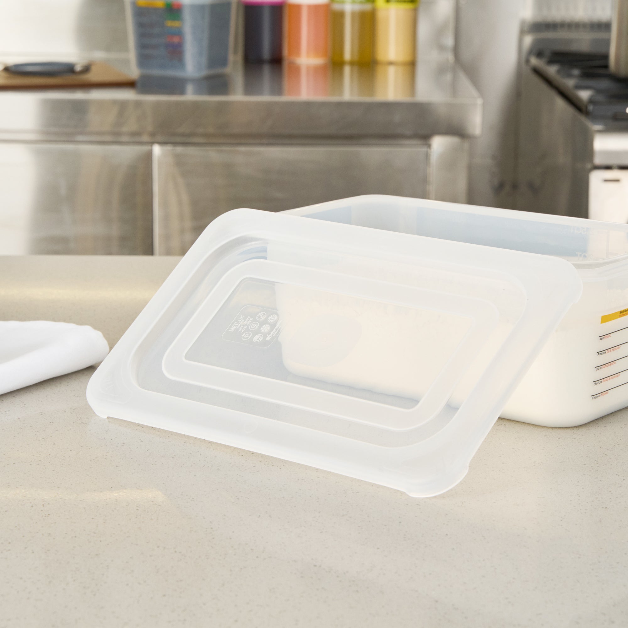 Ensure efficient food storage with a versatile container lid. The Met Lux Easy-Open Tab Quarter Size Container Lid offers seamless food prep access with its easy-open tab, making it ideal for busy commercial kitchens. Crafted from clear polypropylene, this clear food storage lid allows for quick identification of contents, streamlining kitchen operations. Its robust construction is both hot and cold food friendly, which supports diverse menu options. Plus, it’s dishwasher-friendly, ensuring quick and repeated cleaning for enhanced kitchen efficiency. Measuring 10.5 inches in length and 6.5 inches in width, this rectangular food lid provides a secure fit with 1/4 size food pans, preventing spills and maintaining food freshness during storage and transport. Optimize your kitchen workflow and maintain food quality with this indispensable kitchen accessory. Each order includes 10 Met Lux Easy-Open TabContainer Lids.