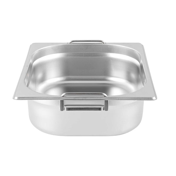 - Collapsible handles make it easy to carry and reload prepared foods in the steam table pans