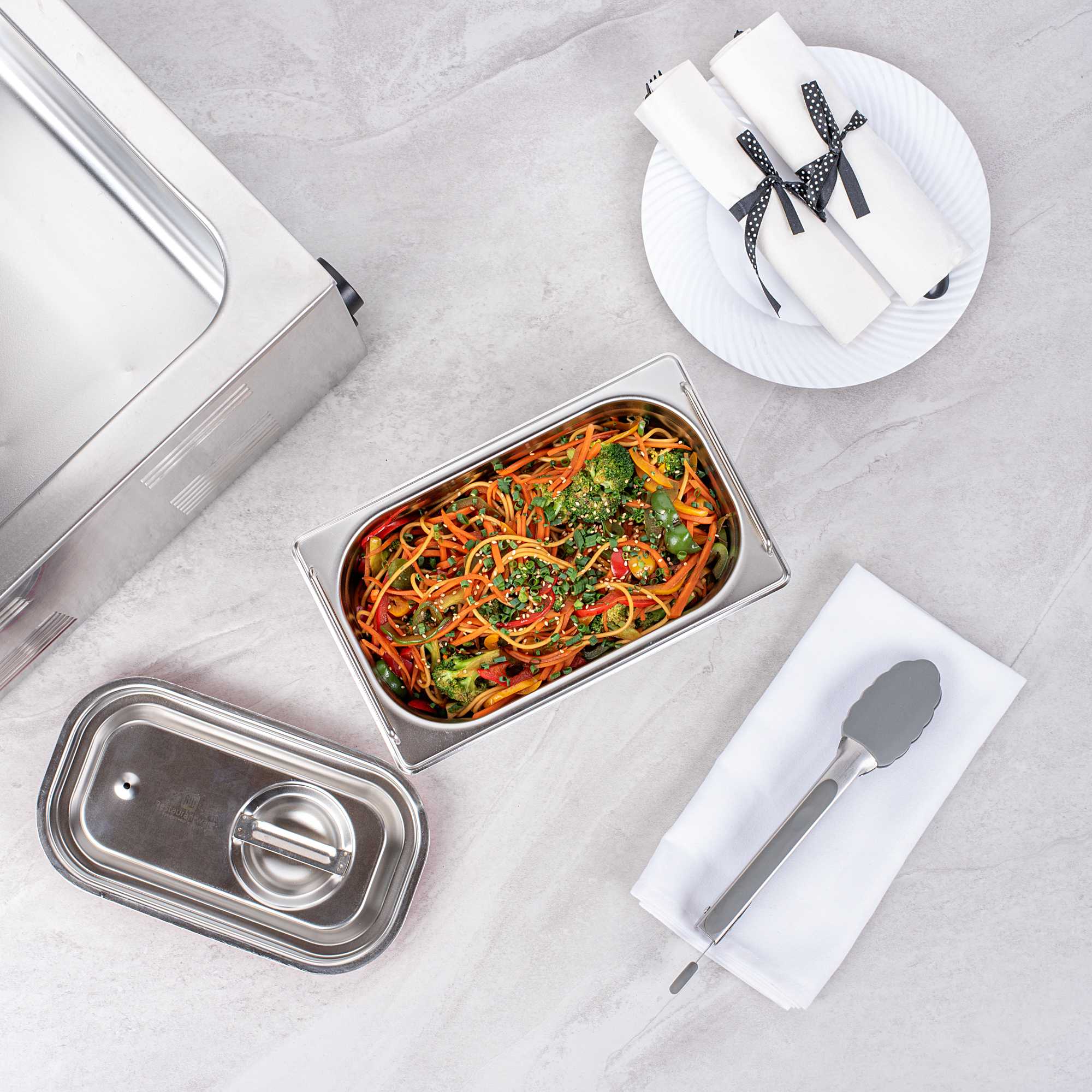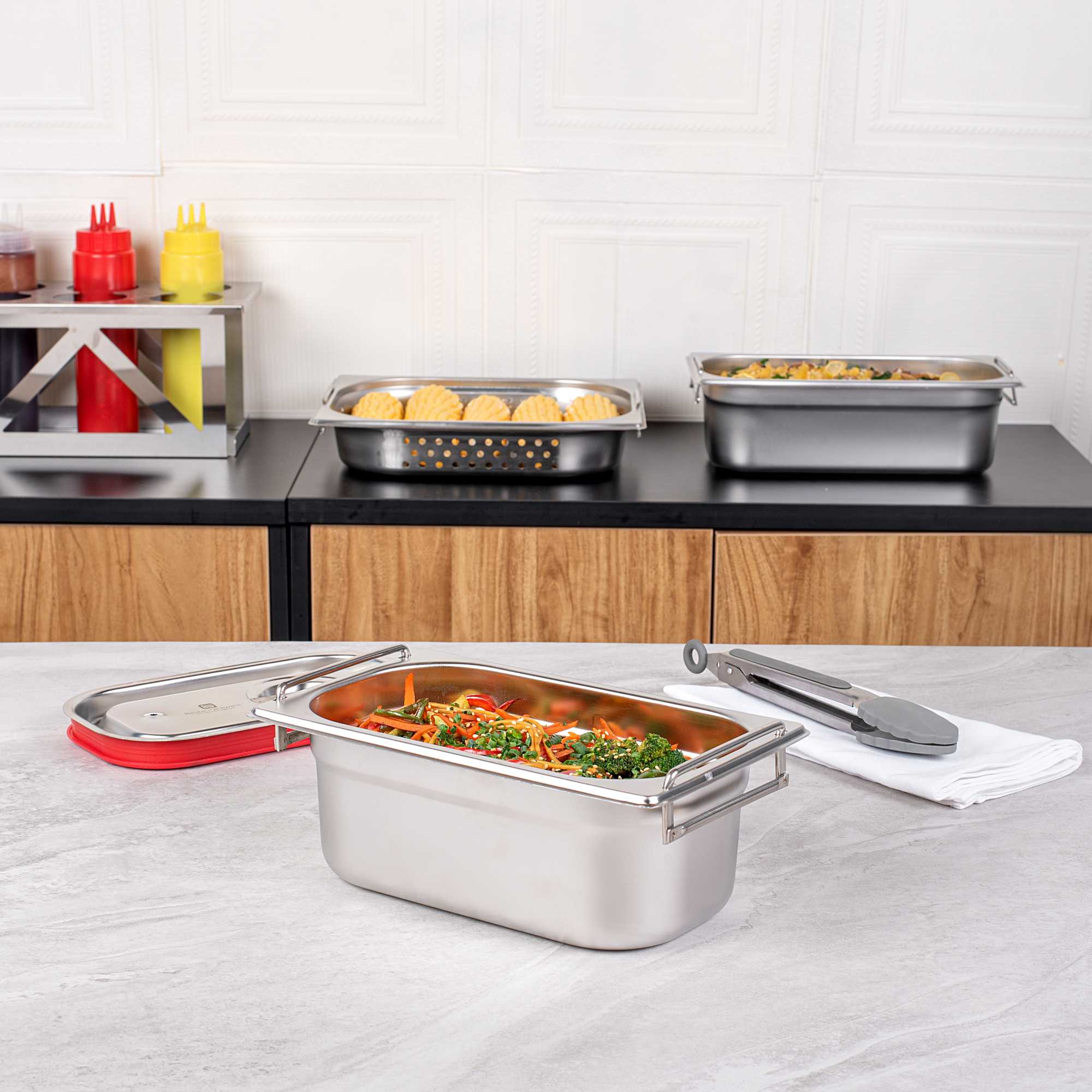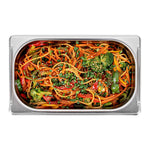 - Collapsible handles make it easy to carry and reload prepared foods in the steam table pans
