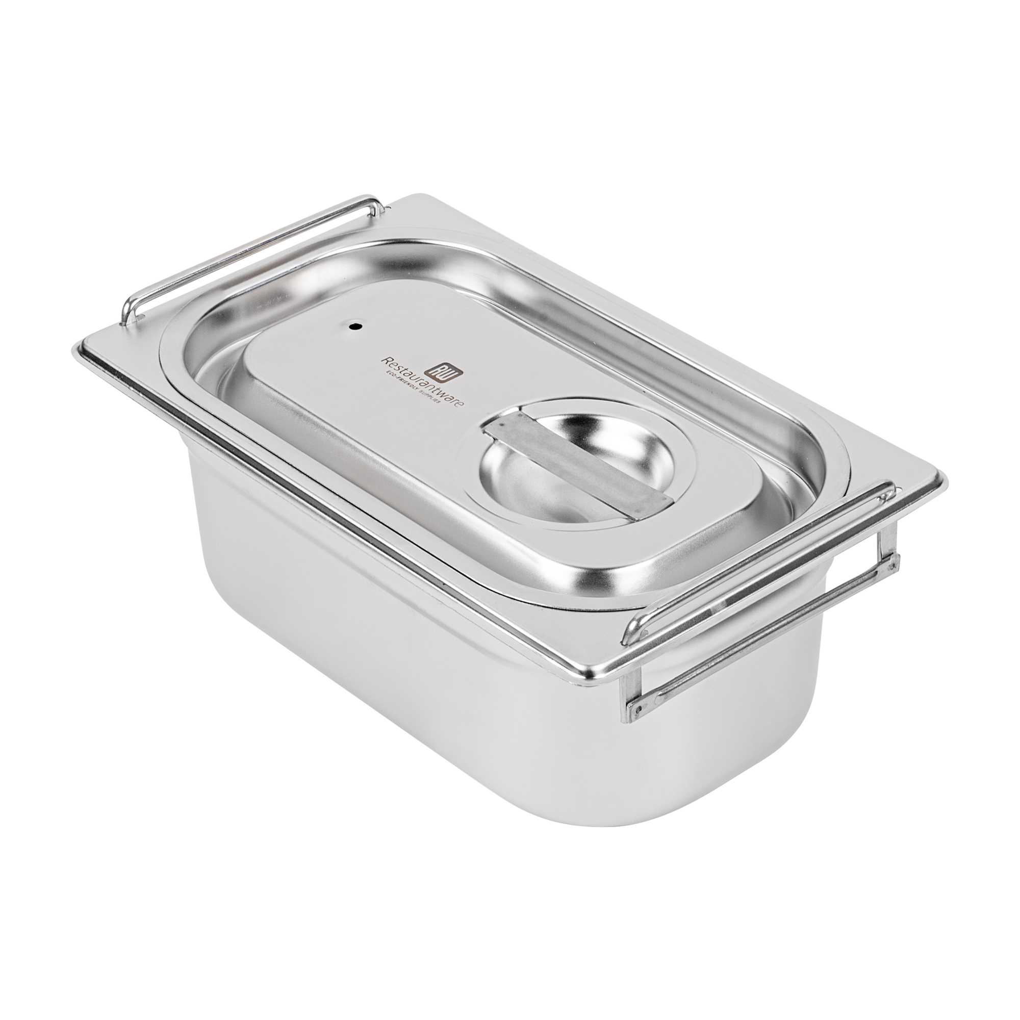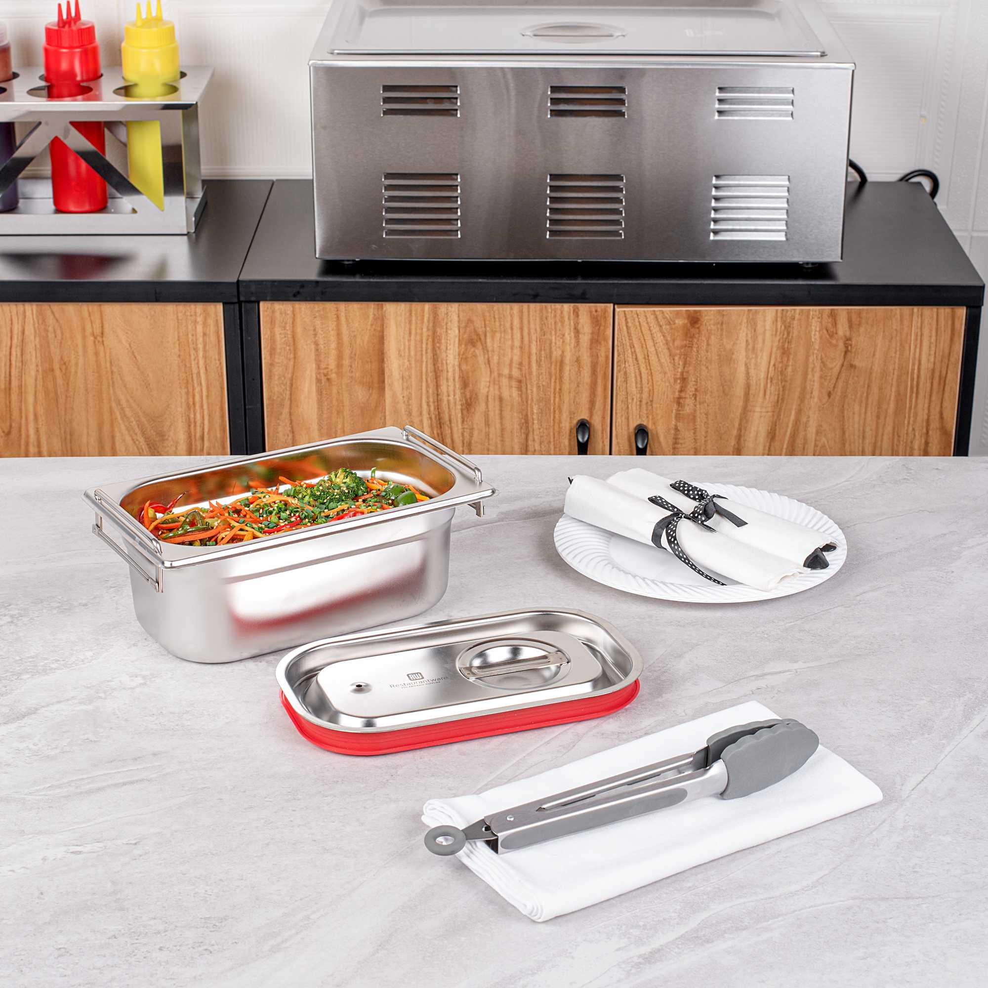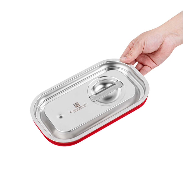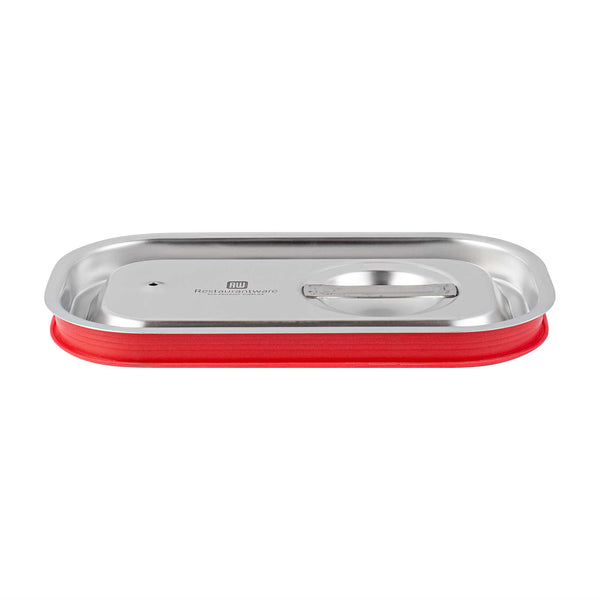 Effortlessly transport your prepared dishes to off-site catering events with our Met Lux 1/4 Size Steam Table Pan Travel Lid. Designed with a built-in silicone seal, this steam pan lid forms a tight-fitting seal on our restaurant steam table pans to lock in heat and prevent messes. Pair our steam pans with lids to easily transport trays of your food to corporate functions, weddings, and other catered functions. This steam table travel lid features an easy-to-grip handle and impact-resistant stainless steel construction to keep your food safe and secure on the go. Browse our selection of Met Lux 1/4 Size Steam Table Pans (such as SKU: RWT0039) to complete your serving solution. Sold in a 1 count box.