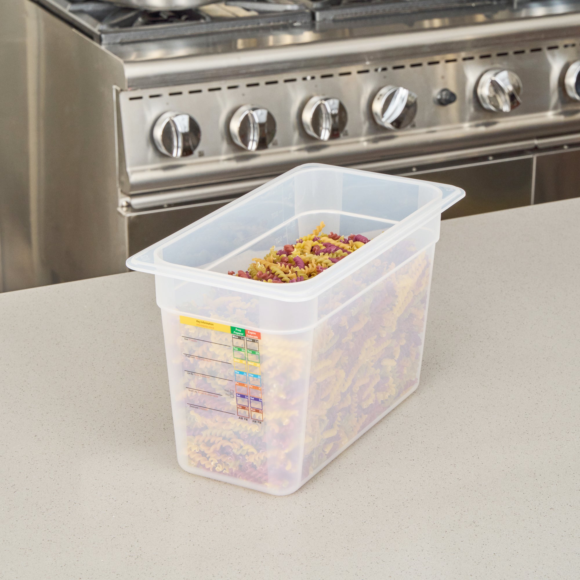 Maximize your kitchen efficiency with versatile food storage solutions. The Met Lux Built-In Label Plastic Food Container offers a streamlined design that features a built-in label, allowing you to document food type, date, and use-by details, reducing disposable label waste and enhancing your operation's sustainability. This plastic food container features a shape that maximizes storage space by 25 percent, ensuring you can efficiently organize your kitchen. Designed with temperature resilience, it withstands temperatures from -40 to 203 degrees Fahrenheit, making it ideal for safe hot and cold storage. Its flexible polypropylene material is stain-resistant and dishwasher safe, providing the durability you need for daily use in busy kitchens. The stackable food storage design allows for convenient and compact stacking, optimizing shelf space. Trust this reusable food storage container to support your foodservice needs. Each order includes 10 Met Lux Built-In Label Plastic Food Containers.