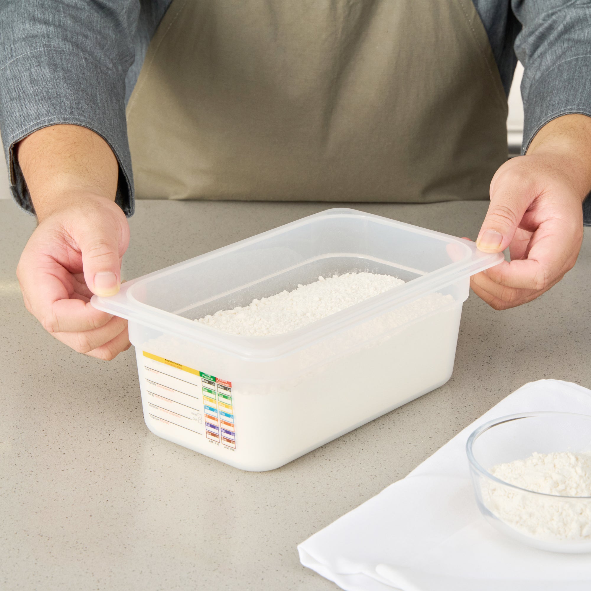 Maximize storage efficiency with versatile food containers. The Met Lux Plastic Food Container offers a built-in label that minimizes disposable label waste, making it an ideal plastic food container for sustainable kitchens. Its innovative shape maximizes storage space by 25%, efficiently utilizing your shelving capacity. Constructed from durable plastic, this stackable food container withstands temperatures from -40 to 203 degrees Fahrenheit, ensuring reliable ingredient storage for both hot and cold dishes. Its flexible polypropylene design makes it stain-resistant and dishwasher safe, providing long-lasting utility and cleanliness in demanding foodservice settings. The container's dimensions of approximately 10.3 inches in length, 6.2 inches in width, and 3.9 inches in height make it an optimal choice for ingredient storage needs. Elevate your kitchen organization with this adaptable solution. Each order includes 10 Met Lux Plastic Food Containers.