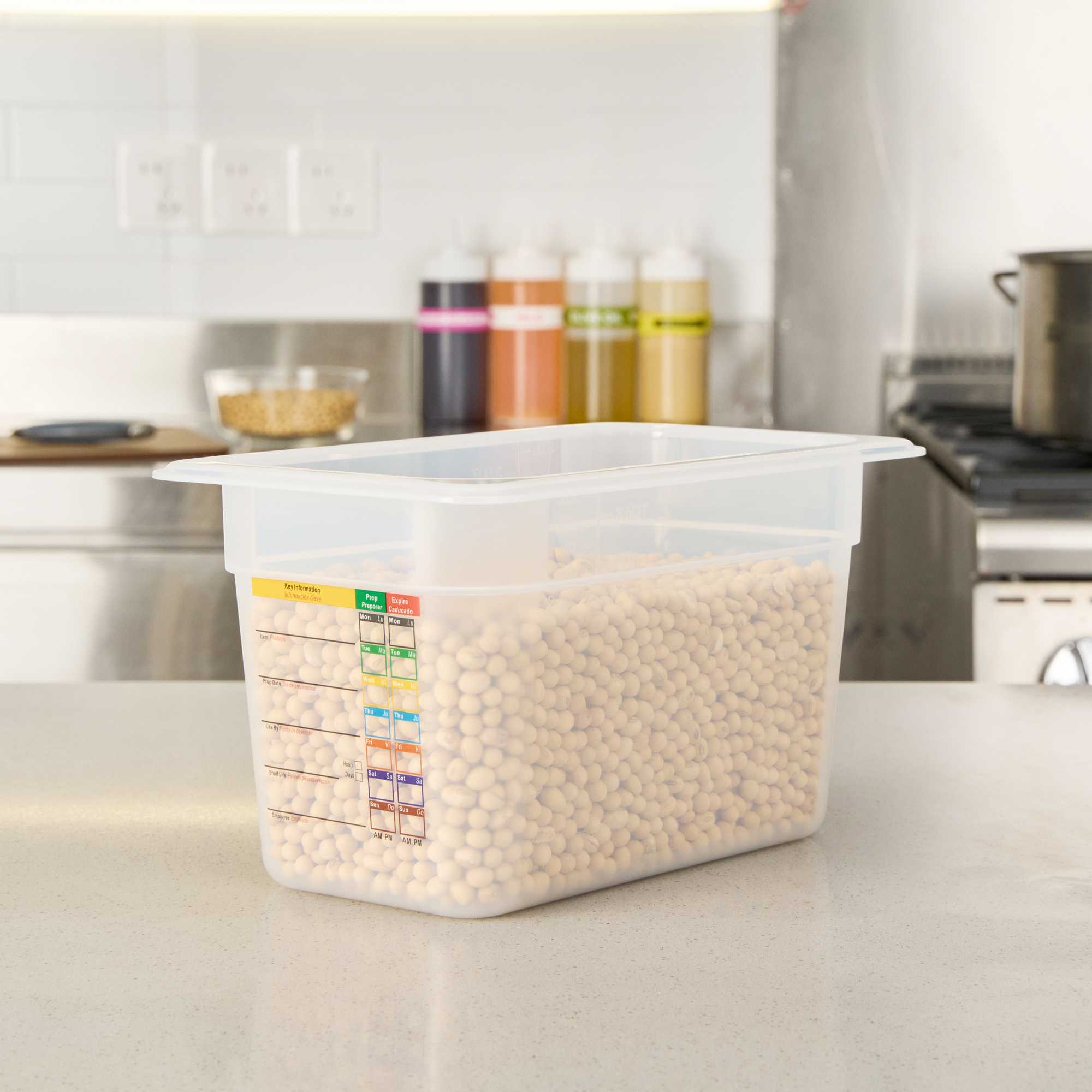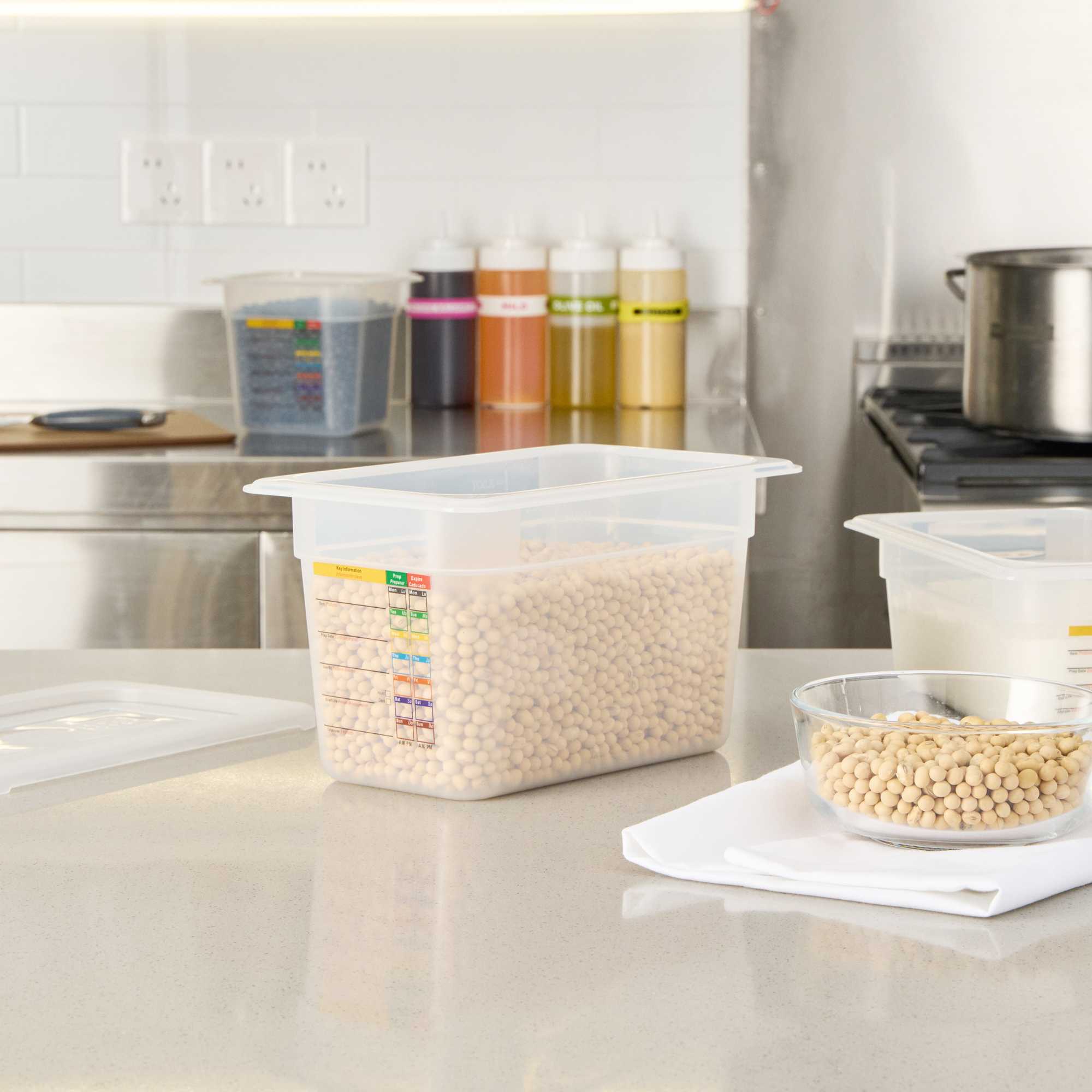 Optimize your cold and hot food storage with reusable labeling. The Met Lux Plastic Food Container features a built-in label that reduces disposable label waste and costs, allowing kitchen staff to efficiently manage inventory with ease. This plastic food container is not only dishwasher safe, ensuring effortless cleaning, but its shape maximizes storage space by up to 25 percent compared to round containers. Constructed from flexible polypropylene, it withstands temperatures from -40 to 203 degrees Fahrenheit, making it a reliable freezer-safe container. Each container measures 10.3 inches in length, 6.2 inches in width, and 5.9 inches in height, providing ample space for storing various ingredients or prepared meals. Its stackable design enhances kitchen organization, while its stain-resistant white surface maintains a clean appearance. Elevate your kitchen storage container solutions with this versatile option. Each order includes 1 Met Lux Plastic Food Container.