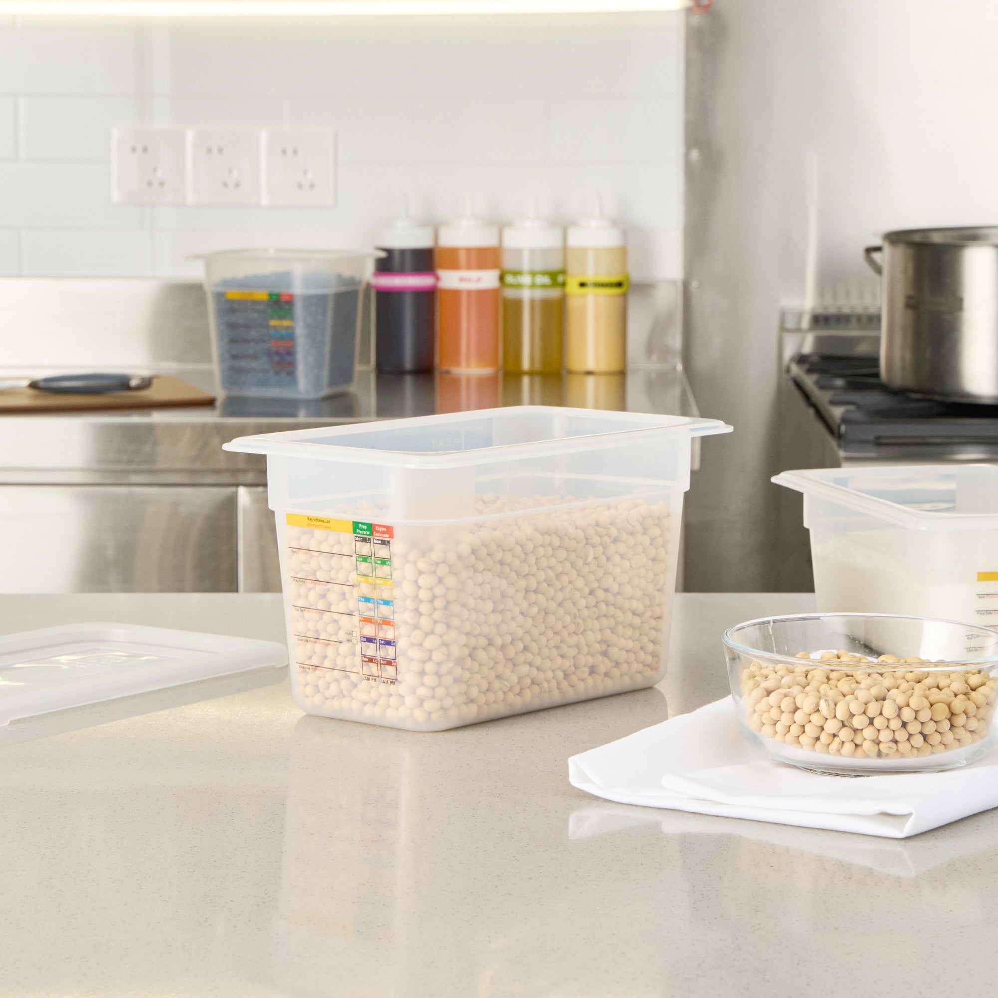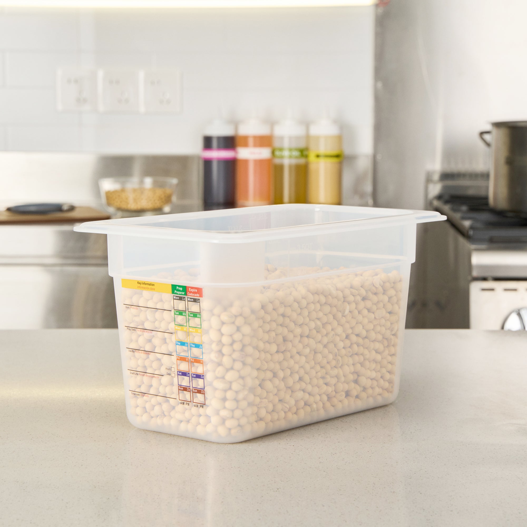 Optimize your cold and hot food storage with reusable labeling. The Met Lux Plastic Food Container features a built-in label that reduces disposable label waste and costs, allowing kitchen staff to efficiently manage inventory with ease. This plastic food container is not only dishwasher safe, ensuring effortless cleaning, but its shape maximizes storage space by up to 25 percent compared to round containers. Constructed from flexible polypropylene, it withstands temperatures from -40 to 203 degrees Fahrenheit, making it a reliable freezer-safe container. Each container measures 10.3 inches in length, 6.2 inches in width, and 5.9 inches in height, providing ample space for storing various ingredients or prepared meals. Its stackable design enhances kitchen organization, while its stain-resistant white surface maintains a clean appearance. Elevate your kitchen storage container solutions with this versatile option. Each order includes 10 Met Lux Plastic Food Containers.
