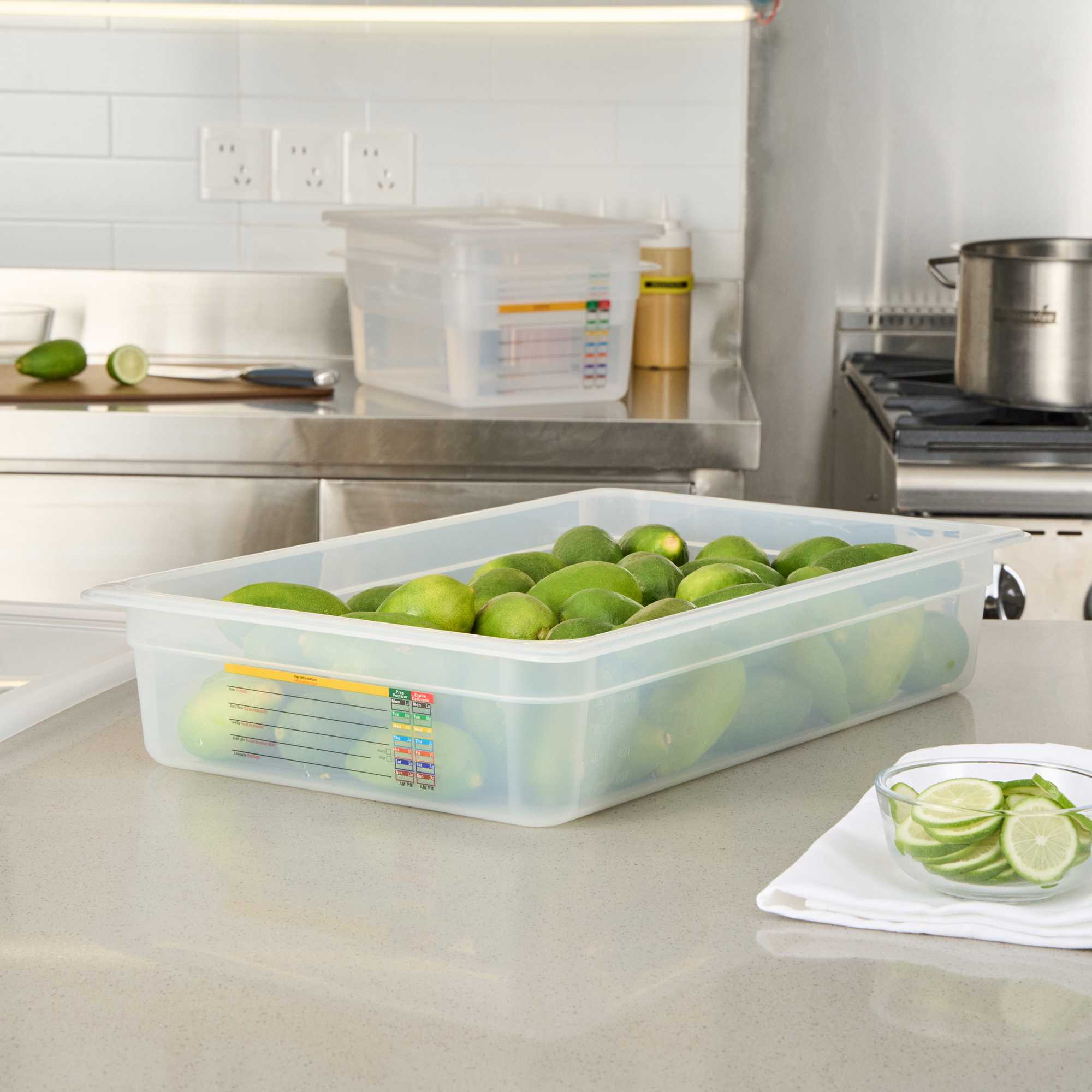 Enhance your kitchen's efficiency with innovative storage solutions. The Met Lux Built-In Label Plastic Food Container features a built-in label that allows clear recording of essential information like food type and use-by date, significantly reducing costs and waste associated with disposable labels. Its shape maximizes storage space by up to 25%, making it a perfect choice for busy kitchens. Made from durable white plastic, this container is resistant to stains and can withstand temperatures from -40 to 203 degrees Fahrenheit, ensuring it can handle both hot and cold food storage needs. Plus, it is dishwasher safe, allowing for easy cleaning and reuse, which is ideal for maintaining efficiency in high-turnover settings. Elevate your food storage system by choosing this stackable food container to streamline operations. Each order includes 1 Met Lux Built-In Label Plastic Food Container.
