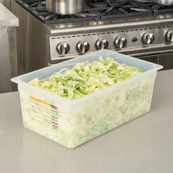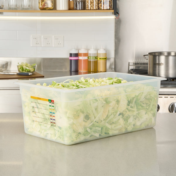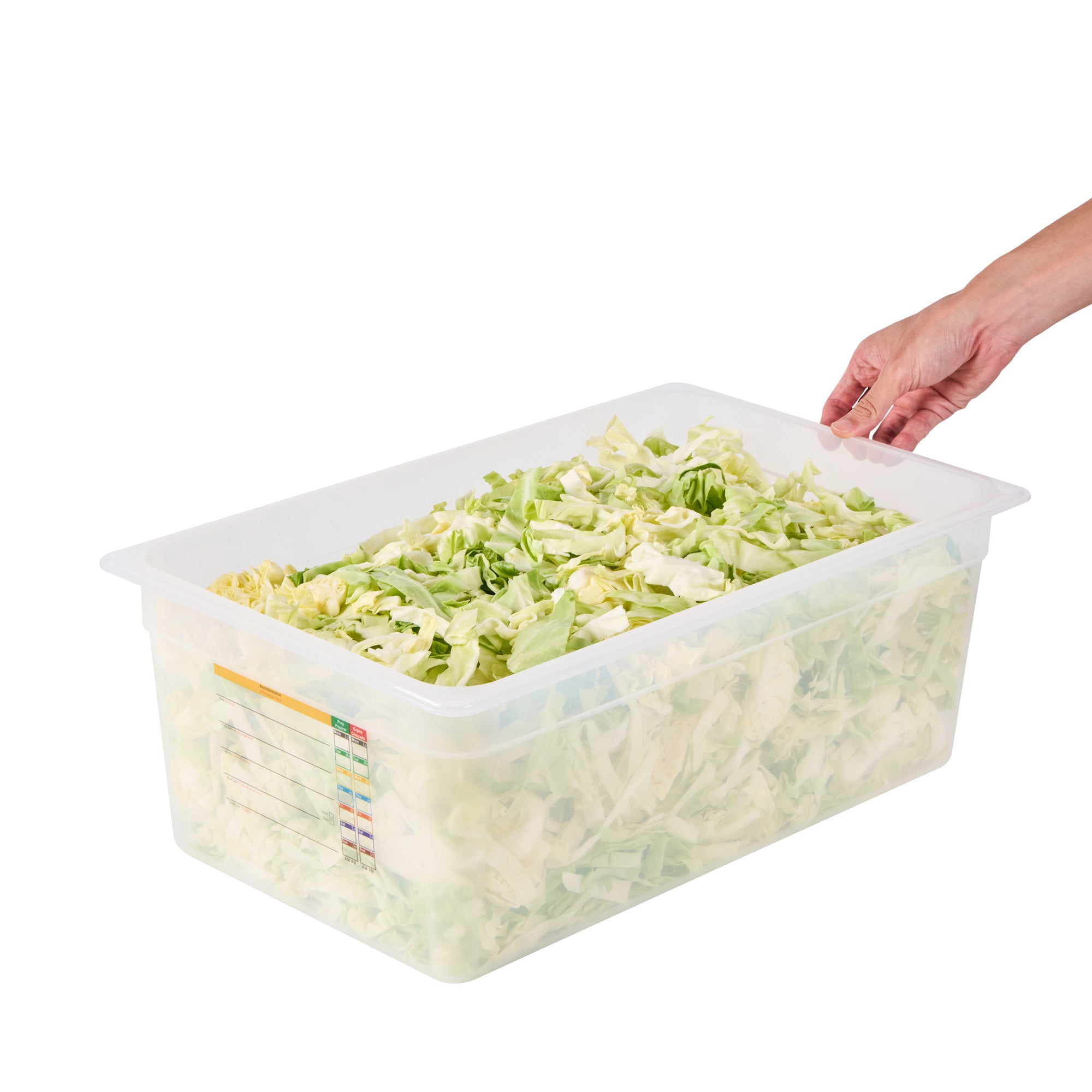 Maximize your kitchen's efficiency with space-saving storage solutions. The Met Lux Integrated Label Full-Size Food Pan features a durable polypropylene construction that withstands the rigors of daily use in demanding commercial kitchens, ensuring both longevity and reliability. Designed as a full-size food pan, it's built-in label reduces costs and waste by providing a reusable tracking system. With a shape that maximizes storage space by up to 25 percent, this plastic food storage container is perfect for busy prep areas needing effective organization. Its wide temperature range, from -40°F to 203°F, ensures versatile use for storing both hot and cold foods, maintaining the integrity of ingredients with ease. Ideal for caterers and high-volume kitchens, this stackable food pan enhances your workflow by saving valuable storage space. Each order includes 10 Met Lux Integrated Label Full-Size Food Pans.