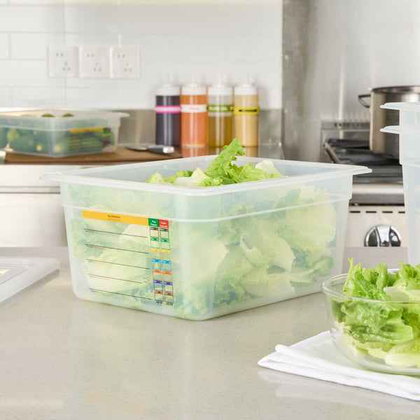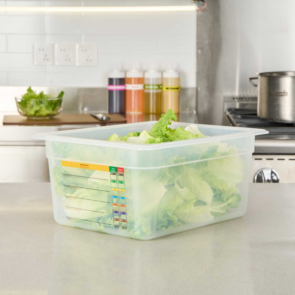 Optimize your kitchen's efficiency with flexible storage solutions. The Met Lux Built-In Label Plastic Food Storage Container features a built-in label that reduces disposable label costs and waste, perfect for streamlining operations. This plastic food storage container maximizes storage space by up to 25 percent compared to traditional round containers, making it ideal for compact kitchens. Its stackable design saves valuable storage space, allowing for efficient organization. Crafted from durable polypropylene, this freezer safe container withstands temperatures from -40 to 203 degrees Fahrenheit, ensuring versatile use from freezer to dishwasher. The 12.7-inch by 10.4-inch by 5.9-inch dimensions provide ample capacity while maintaining a manageable footprint. Enhance your storage solutions with this stackable container, designed to meet the rigorous demands of professional kitchens. Each order includes 1 Met Lux Built-In Label Plastic Food Storage Container.