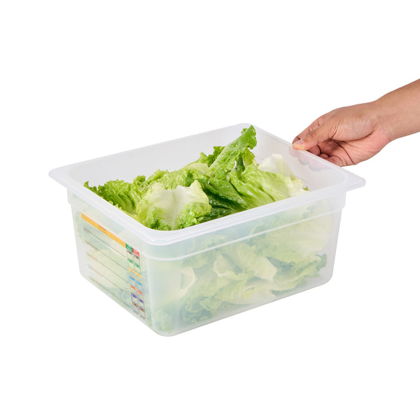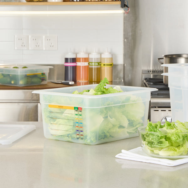 Optimize your kitchen's efficiency with flexible storage solutions. The Met Lux Built-In Label Plastic Food Storage Container features a built-in label that reduces disposable label costs and waste, perfect for streamlining operations. This plastic food storage container maximizes storage space by up to 25 percent compared to traditional round containers, making it ideal for compact kitchens. Its stackable design saves valuable storage space, allowing for efficient organization. Crafted from durable polypropylene, this freezer safe container withstands temperatures from -40 to 203 degrees Fahrenheit, ensuring versatile use from freezer to dishwasher. The 12.7-inch by 10.4-inch by 5.9-inch dimensions provide ample capacity while maintaining a manageable footprint. Enhance your storage solutions with this stackable container, designed to meet the rigorous demands of professional kitchens. Each order includes 10 Met Lux Built-In Label Plastic Food Storage Containers.