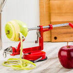 RED MANUAL APPLE PEELER / SLICER / CORER - STAINLESS STEEL BLADE