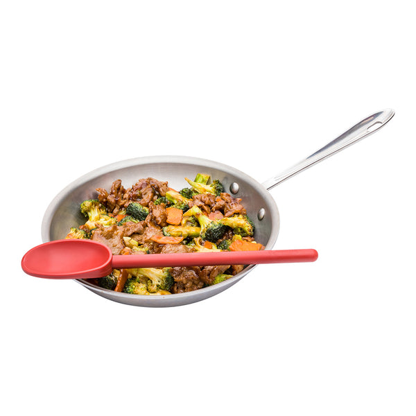 Stir up savory entrees or mix up sweet batters with our Met Lux Red Nylon High Heat Spoon. Crafted from high-quality nylon, this mixing spoon is built to endure high temperatures up to 390°F. With a naturally smooth surface, this high-heat nylon spoon won't leave scratches on delicate surfaces and is ideal for non-stick cookware. This nylon mixing spoon is dishwasher-safe and easy to clean after cooking. Organize your kitchen by color-coding your utensils with our selection of nylon spoons to help avoid the cross-contamination of foods. This heat-resistant nylon spoon measures 12 inches long by 2.2 inches wide. Shipped in a 1 count box.