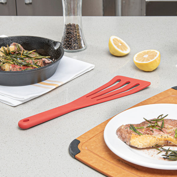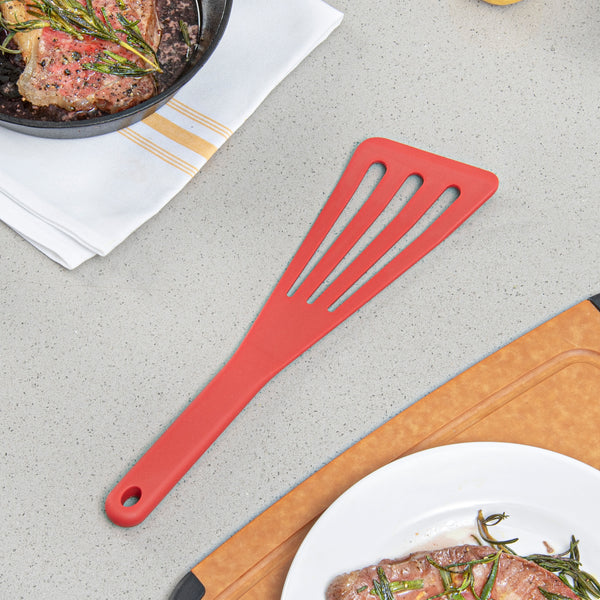 RED SILICONE HIGH TEMPERATURE SLOTTED TURNER / SPATULA