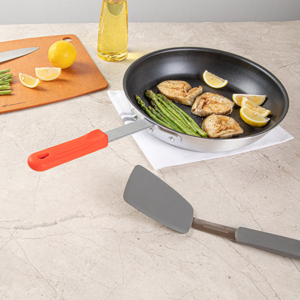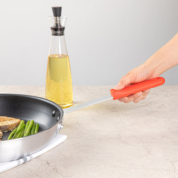 Enhance your kitchen safety with a versatile solution. The Met Lux Silicone Handle Cover combines a heat-resistant silicone construction to protect hands from burns when handling hot cookware, making it an essential silicone handle cover for busy chefs. Its removable design allows for seamless transitions between pans, enhancing efficiency during high-paced cooking sessions. Molded indentations provide a secure and comfortable grip, reducing the risk of accidents and offering chefs a reliable pan handle protector. With its dishwashable silicone material, this handle cover saves time with easy cleanup, maintaining hygiene standards in your kitchen. Measuring 5.25 inches in length, it fits snugly on 10-inch and 12-inch aluminum pans, making it an ideal heat-resistant silicone sleeve for professional and home kitchens alike. Invest in this indispensable kitchen accessory to ensure safe and comfortable handling of hot cookware. Each order includes 1 Met Lux Silicone Handle Cover.