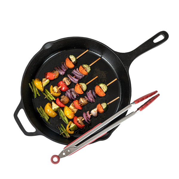 These silicone kitchen tongs feature a stainless steel body with an easy pull lock, making storage a breeze. The sturdy build ensures chores like tossing salad, flipping steaks, and more are managed effortlessly.