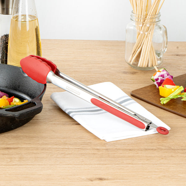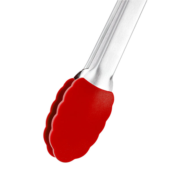 RED STAINLESS STEEL KITCHEN TONG - SCALLOPED