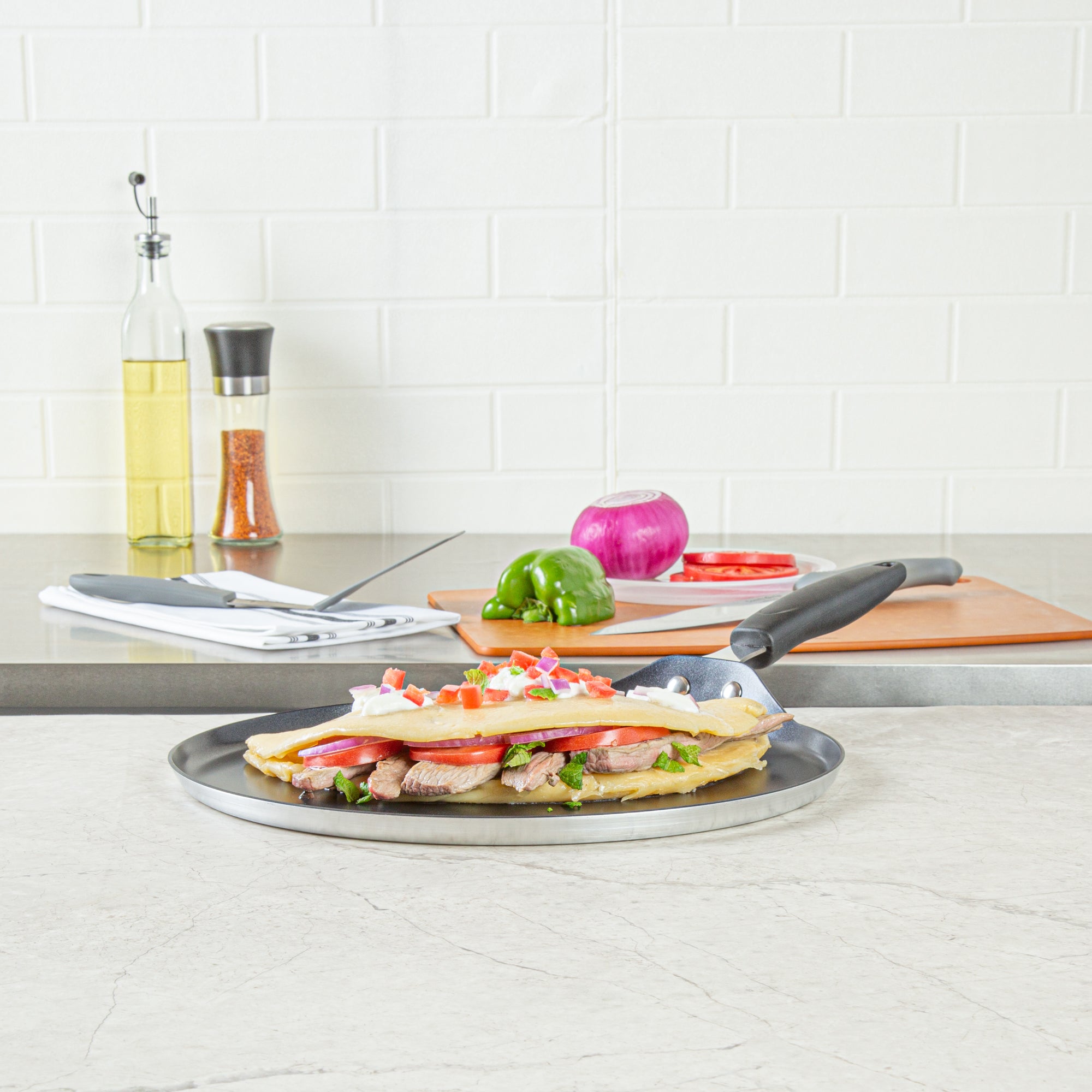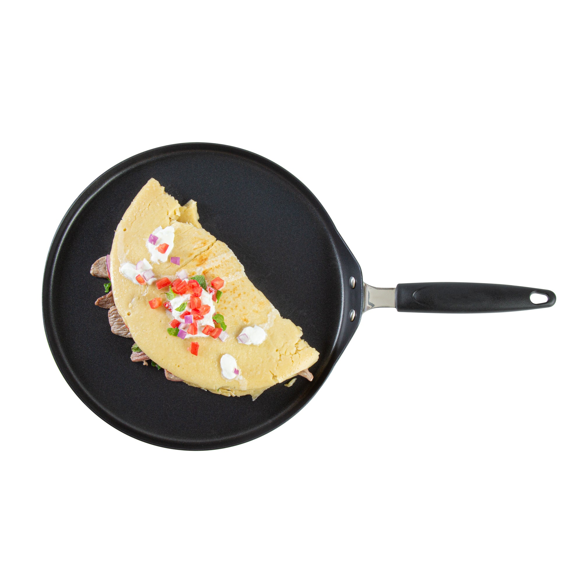ROUND ALUMINUM GRIDDLE - NON-STICK, WITH BAKELITE HANDLES