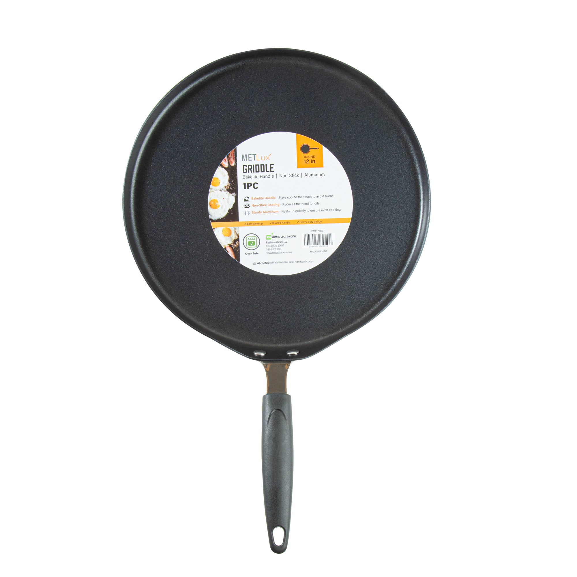 Enjoy secure handling with a style that matches your cooking needs! These pancake griddles offer chrome and Bakelite handle options, providing a comfortable grip to suit your preference.