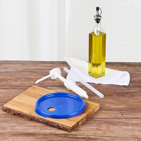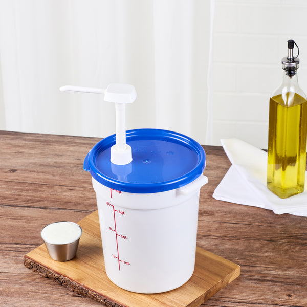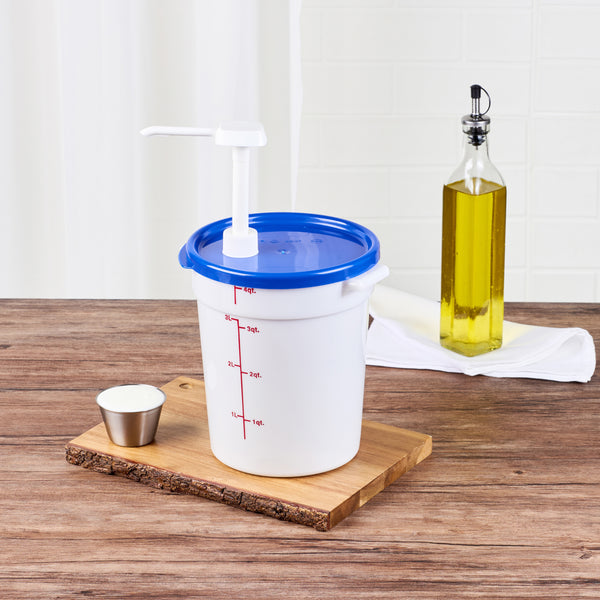 Our Met Lux Round Blue Plastic Lid is the perfect solution for maintaining freshness and organization in your kitchen. Crafted from durable plastic, this round lid ensures long-lasting use while securely sealing your food storage container. Each lid includes a designated hole to securely fit pump dispensers, ensuring convenience. These food storage container lids are designed to fit seamlessly with a 4-quart container, ensuring a snug and reliable fit. Featuring a convenient date indicator, these lids allow for easy tracking of food freshness. Color-coded in a distinctive blue hue, these lids help streamline your storage system, making it effortless to identify contents at a glance. The airtight lid design helps preserve the quality and flavor of stored items, keeping them fresh for longer periods. Measuring 7.25 inches in length by 7.25 inches in width, this 4-quart container lid is both practical and versatile for various storage needs. Sold in a 1 count box.