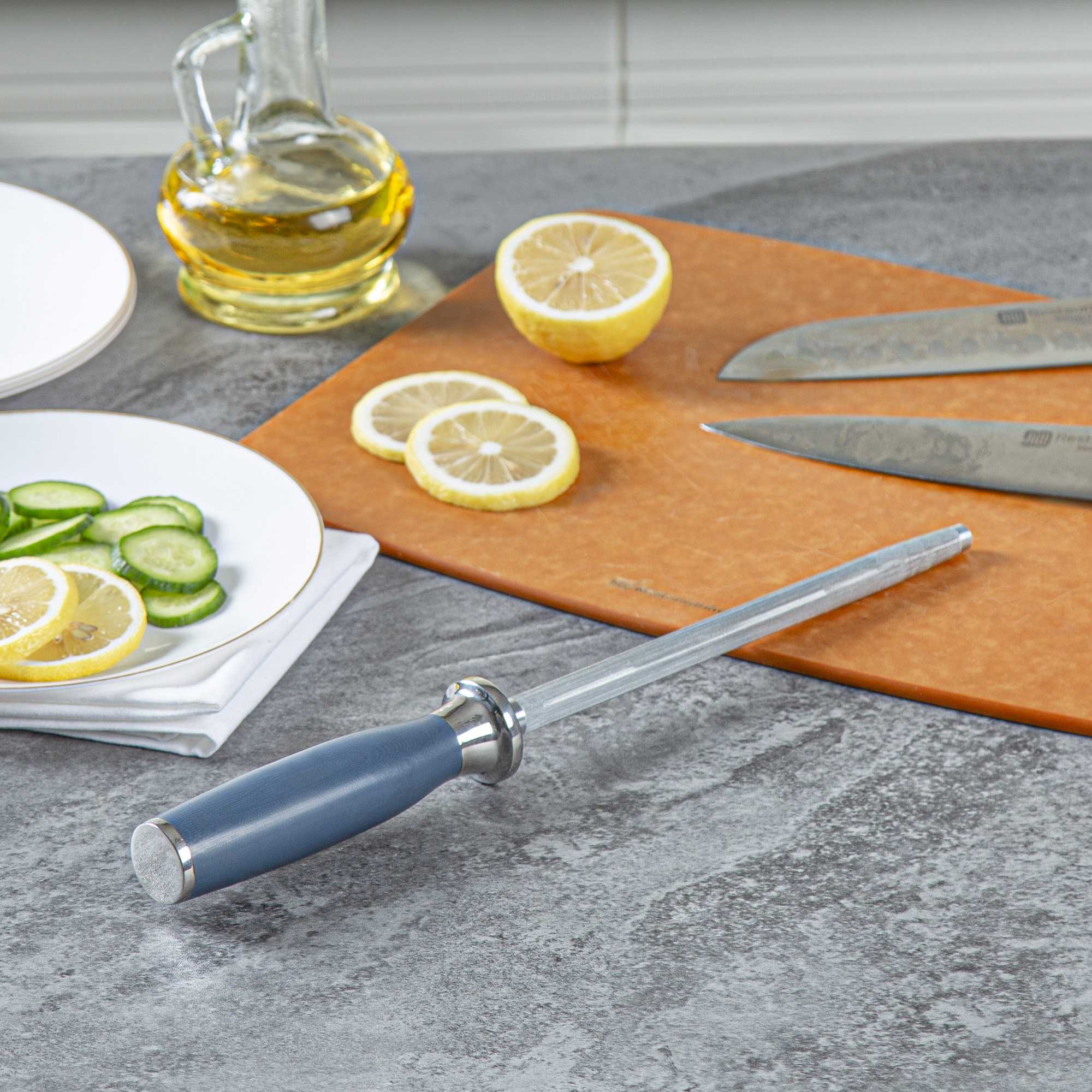 SILVER AND BLUE STEEL 8" HONING KNIFE TOOL
