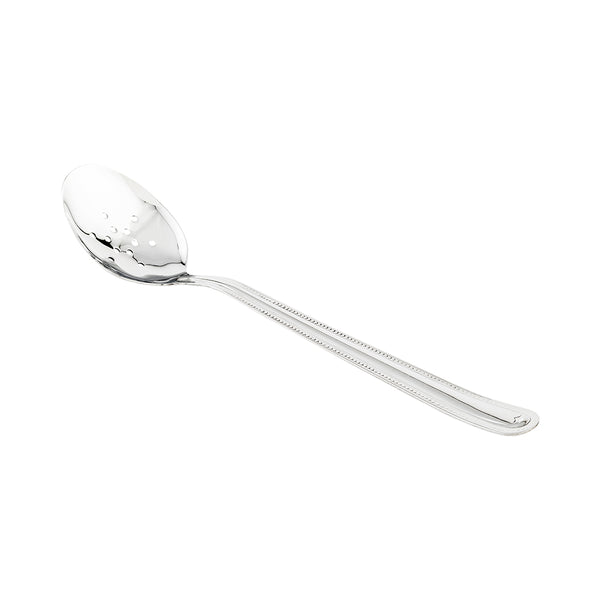 Stylishly serve appetizers, side dishes, entrees, and more with these Met Lux Perforated Buffet Serving Spoons. Featuring a high-quality stainless steel construction, these buffet serving spoons are incredibly durable and heat-resistant. Use these perforated stainless steel serving spoons to strain and serve steamed vegetables, poached seafood, and other messier foods! Featuring an intricately detailed handle and a high-shine polished finish, these decorative serving spoons are sure to add a touch of elegance to any occasion. These buffet spoons are ideal for portioning and serving food at buffets, corporate functions, and other catered events. Each of these buffet serving spoons measures 12 inches long. Shipped in a 1 count box.