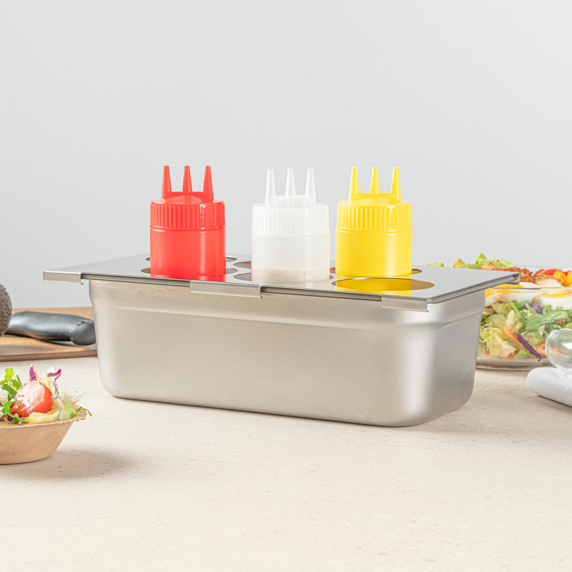 SIX HOLE STAINLESS STEEL SQUEEZE BOTTLE HOLDER TOP