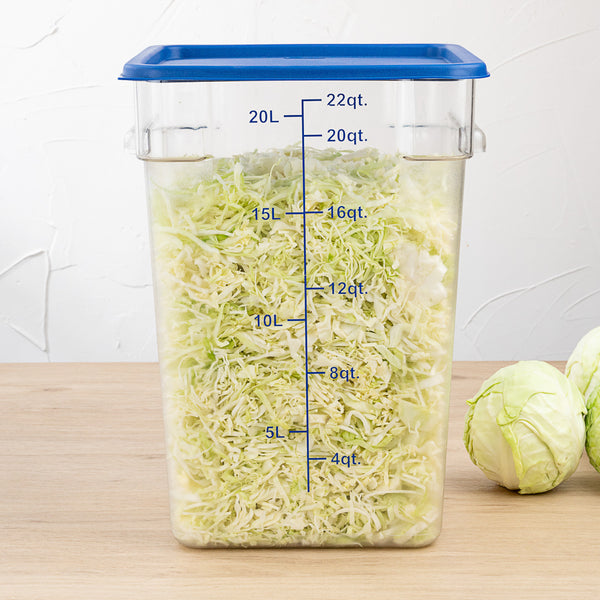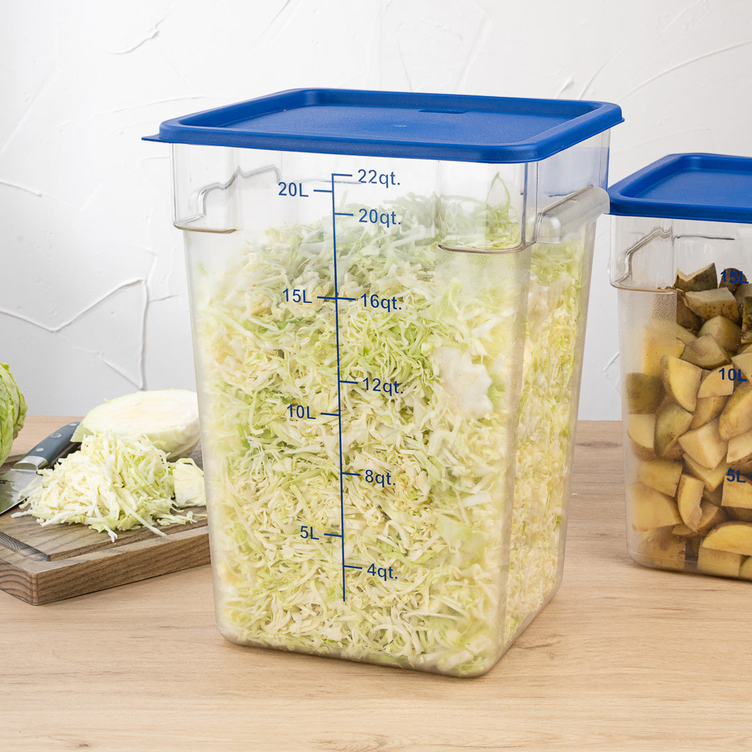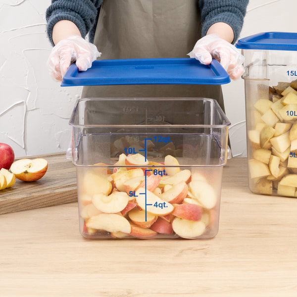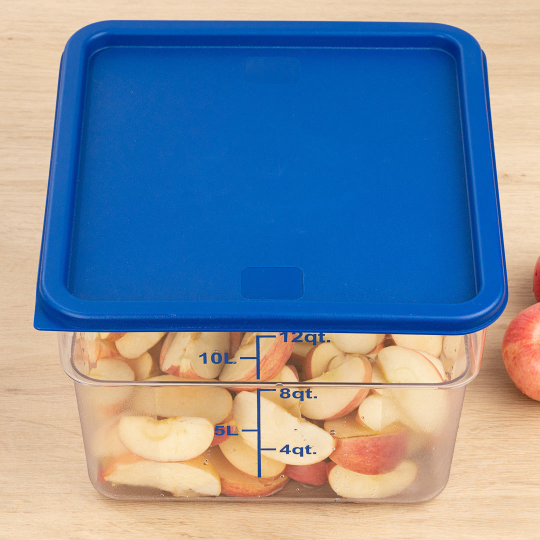 Protect your dried fruits and vegetables from cross-contamination with our Met Lux Square Blue Plastic Food Storage Container Lid. Coordinate our 12-, 18-, and 22-quart food storage containers (SKU: RWT0838-1, RWT0839-1, and RWT0840-1) with lids to safely secure your prepped foods. Featuring a date indicator, this food storage lid allows you to practice product rotation in a simple and efficient manner. With a built-in tab, this food container lid can be removed without any hassle when accessing your dry ingredients. Created from durable plastic, this blue plastic lid withstands daily use for long-lasting performance. This commercial food container lid is freezer-safe to keep foods at your preferred temperature. To maintain their pristine condition, this square plastic lid is crack-resistant. Designed with a blue finish, this plastic food container lid allows you to organize containers into a color-coded system. This blue lid is dishwasher-safe to shorten the cleaning process at your cafe, catering service, or restaurant. Measuring 11.3 inches long by 11.3 inches wide, this container lid is sold in a 1 count box. Food storage containers (SKU: RWT0838-1, RWT0839-1, and RWT0840-1) are available and sold separately.