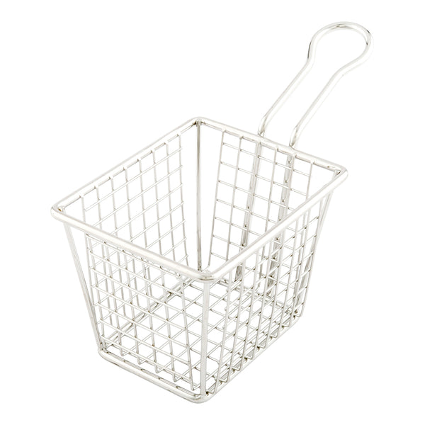 Present your culinary creations in our Met Lux Square Silver Stainless Steel Small Mini Fryer Basket. Made from enduring stainless steel, this basket, specially designed for repeated usage, can accommodate a wide range of food items. Plus, the waffle grid of this fry holder lets the excess oil out. The strengthened rim of this fryer basket deters accidental spills, ensuring your meals stay within the basket. Ideal for eateries, this steel fry holder is dishwashable and easy to maintain clean. The handy handle of this mini fry basket ensures serving ease and safety while dishing out your scrumptious appetizers. Measuring 6.5 inches in length by 3.3 inches in width by 4 inches in height, this recyclable silver fry basket seamlessly enhances your serving aesthetic. Sold in a 1 count box.