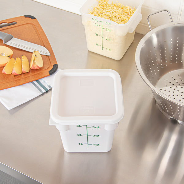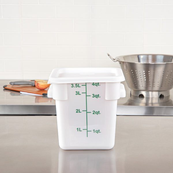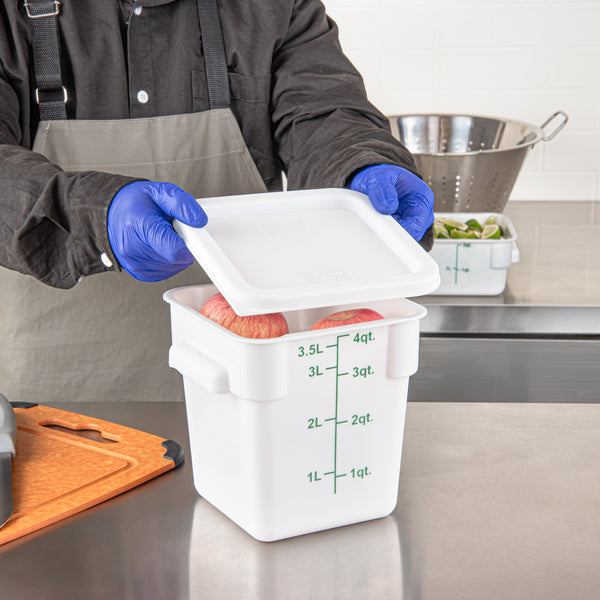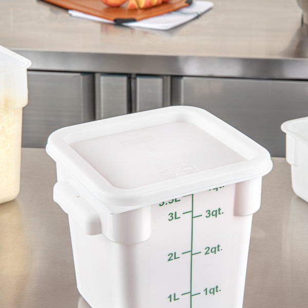 Keep your food fresh and secure with our Met Lux Square White Plastic Food Storage Container Lid. This food container lid, made from durable plastic, is designed to withstand frequent use in any high-volume kitchen or food service establishment. Perfectly fitting a 2 or 4 quarts container, this container lid is versatile and functional, ensuring a snug seal for a variety of food storage needs. This round container lid facilitates efficient storage and organization by keeping contents securely in place and neatly stored. Featuring a pull-corner tab, this storage container lid makes opening and closing a breeze, reducing the risk of spills or messes. This lid is dishwashable, making clean-up quick and easy. Measuring 7.5 inches in length by 7.5 inches in width, this food storage container lid is compact and easy to store, making it a perfect addition to any kitchen space. Sold in a 1 count box. Storage containers are available and sold separately.