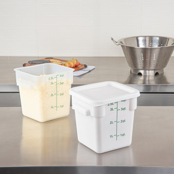 Keep your food fresh and secure with our Met Lux Square White Plastic Food Storage Container Lids. These food container lids, made from durable plastic, are designed to withstand frequent use in any high-volume kitchen or food service establishment. Perfectly fitting 2 and 4 quarts containers, these container lids are versatile and functional, ensuring a snug seal for a variety of food storage needs. These round container lids facilitate efficient storage and organization by keeping contents securely in place and neatly stored. Featuring a pull-corner tab, these storage container lids make opening and closing a breeze, reducing the risk of spills or messes. These lids are dishwashable, making clean-up quick and easy. Measuring 7.5 inches in length by 7.5 inches in width, these food storage container lids are compact and easy to store, making them a perfect addition to any kitchen space. Sold in a 10 count box. Storage containers are available and sold separately.