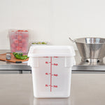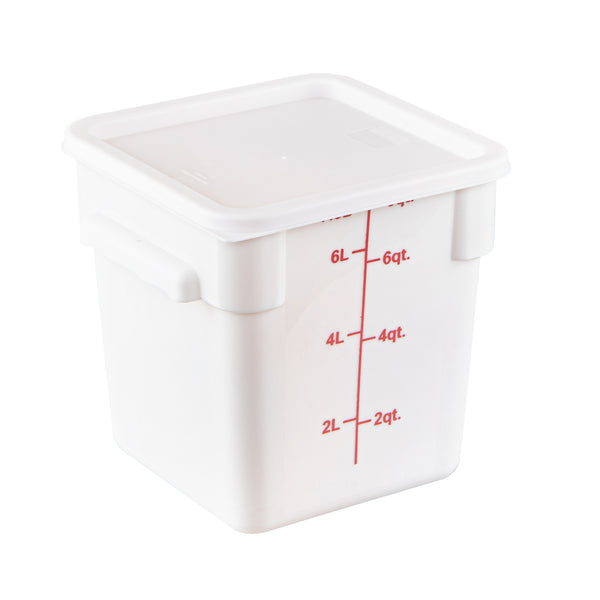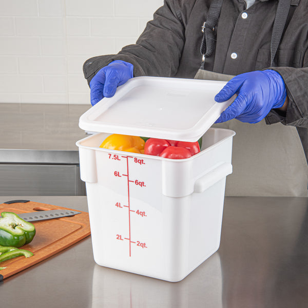 Preserve the freshness of your food item with our Met Lux Square White Plastic Food Storage Container Lid. Designed to fit snugly on a 6 or 8 quarts container, this food container lid offers tailored solutions to meet your various food storage needs. Crafted from durable plastic, the storage container lid is built to withstand daily use in a busy kitchen. This round lid facilitates organization and storage by securely containing contents and keeping them well-arranged. Featuring a pull-corner tab, this storage container lid is easy to remove without making a mess. Plus, this plastic container lid is dishwashable, ensuring quick and easy clean-up. Measuring 9 inches in length by 9 inches in width, this square container lid offers ample coverage for food storage needs. Sold in a 1 count box. Storage container is available and sold separately.