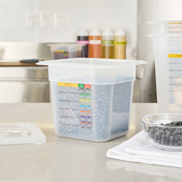 Maximize your kitchen's efficiency with versatile storage solutions. The Met Lux Reusable Plastic Food Container features a built-in label that reduces disposable label waste and costs by allowing staff to record important details. This plastic food container maximizes storage space by up to 25% compared to round containers, making it ideal for space-constrained kitchens. Its dishwasher safe design ensures easy cleaning and reuse, supporting sustainability in your foodservice operations. Constructed from durable plastic, this freezer-safe food container withstands temperatures from -40 to 203 degrees Fahrenheit, offering flexibility for both hot and cold food storage. The stackable food storage design enhances organization, while its dimensions of 6.85 inches in length, 6.2 inches in width, and 5.9 inches in height provide ample capacity for 2.3 quarts of ingredients or prepared dishes. Each order includes 10 Met Lux Reusable Plastic Food Containers.