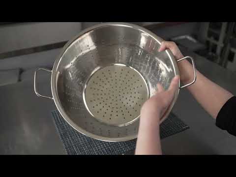 Easily accomplish all of your draining and straining needs with our Met Lux European Style Colander. Constructed from high-quality stainless steel, this large colander is built to be reliable and withstand long-term commercial use. Its raised base design provides a simple and mess-free way to rinse and drain your ingredients, while its dual handles make it effortless to lift foods out of the sink after straining. Measuring 14 inches wide, this stainless steel colander is ideal for use as a pasta strainer or to wash vegetables and fresh produce. This multi-purpose kitchen colander with handles is an essential tool for restaurants, catering companies, and other commercial kitchens. Shipped in a 1 count box.