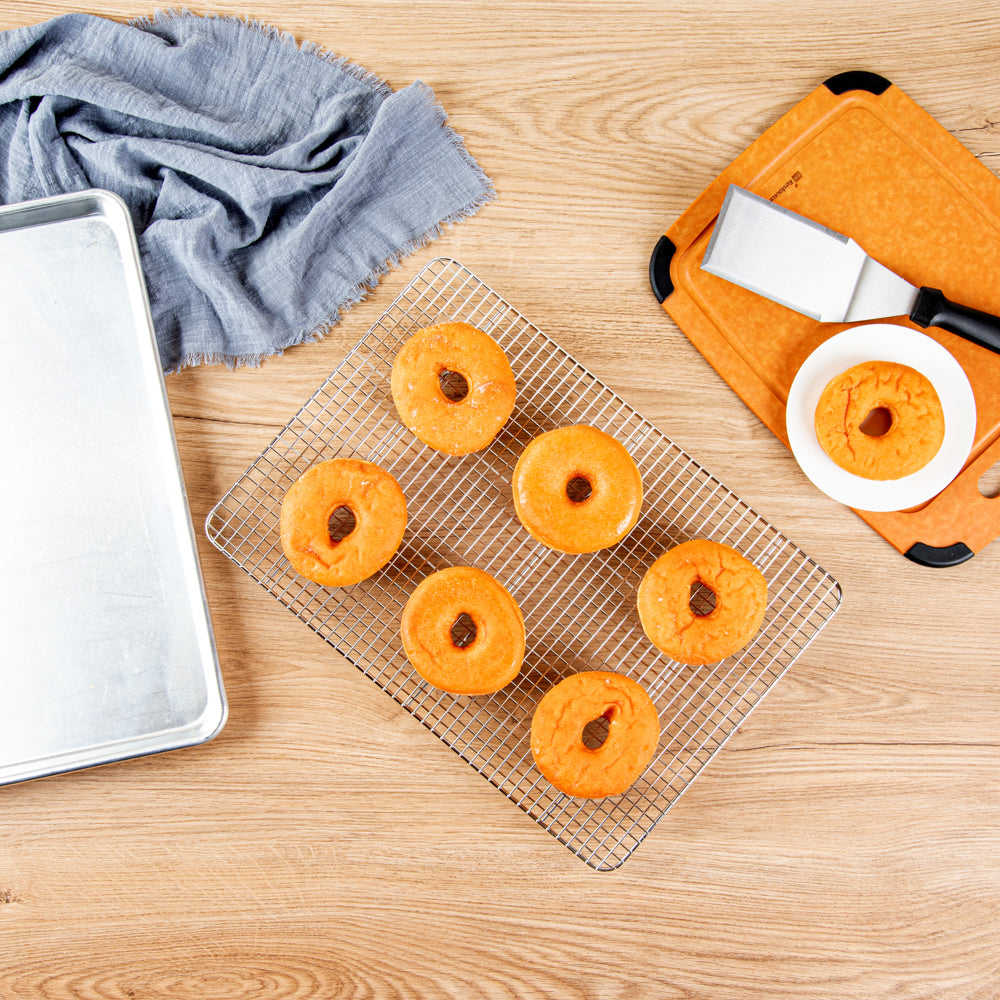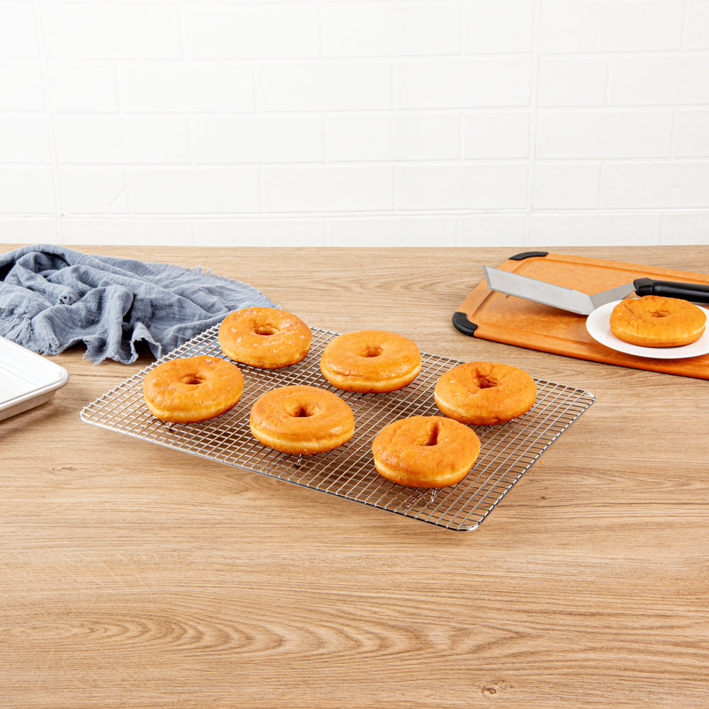 These wire baking racks feature raised feet, elevating your baked goods to promote better airflow and faster cooling. Stop oils from pooling under foods and avoid countertop damage.