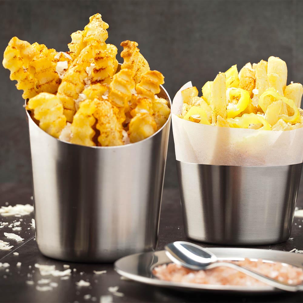 STAINLESS STEEL FRENCH FRY CUP - SHORT, SATIN FINISH
