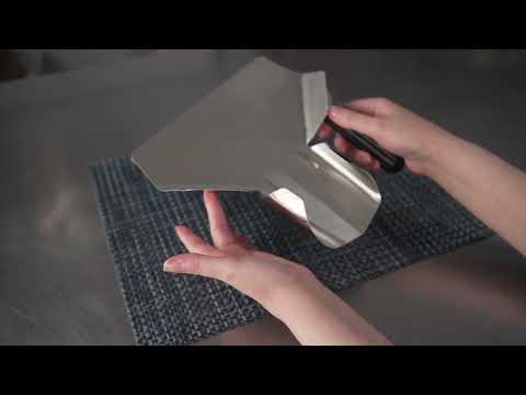 - Funnel design allows to scoop up batches and slide servings to the smaller end