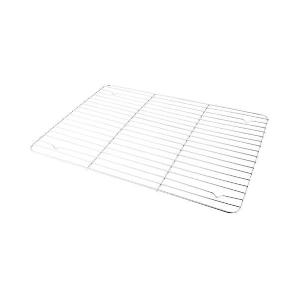 Carefully cool delicate pastries and delicious cakes using our Met Lux Stainless Steel Full Size Cooling Rack. Great for bakeries, restaurants, or catering events, this cooling rack is sized for baking large amounts of goods. The parallel design of the wires allows for a steady airflow to evenly cool down treats. To avoid spills or messes, the footed base of this wire baking rack provides elevation on pans to keep goods from sitting in oils or grease. After baking, simply place this cooling rack into the dishwasher for a quick and easy cleanup. This wire rack can be used for baking or broiling, perfect for sweets and savory foods. Crafted from durable stainless steel, this wire-rack is corrosion-resistant for long-lasting use. Measuring 24 inches in length by 18 inches in width, this wire baking rack is available in a 1 count box.