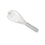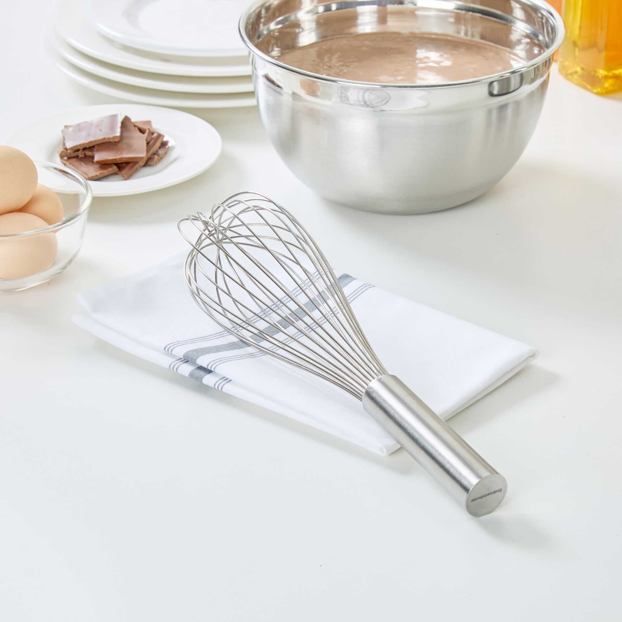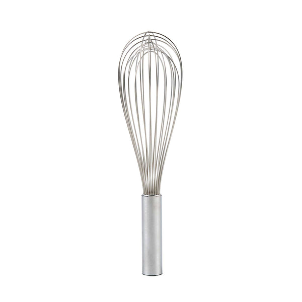 Produce lavish mixtures using our Met Lux Stainless Steel Piano Whisk. Crafted from high-quality stainless steel, this hand whisk is durable and long-lasting, by avoiding the risk of rust. The design of this stainless steel whisk incorporates thin wires that ensure thorough mixing without overworking the ingredients. This baking whisk has an ergonomic handle, reducing user fatigue and fostering a smooth and efficient kitchen experience. Being dishwasher-safe, this balloon whisk further eases your cooking routine by speeding up the cleaning process. This cooking whisk measures 12 inches long by 2.5 inches wide by 2.5 inches tall. Sold in a 1 count box.
