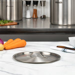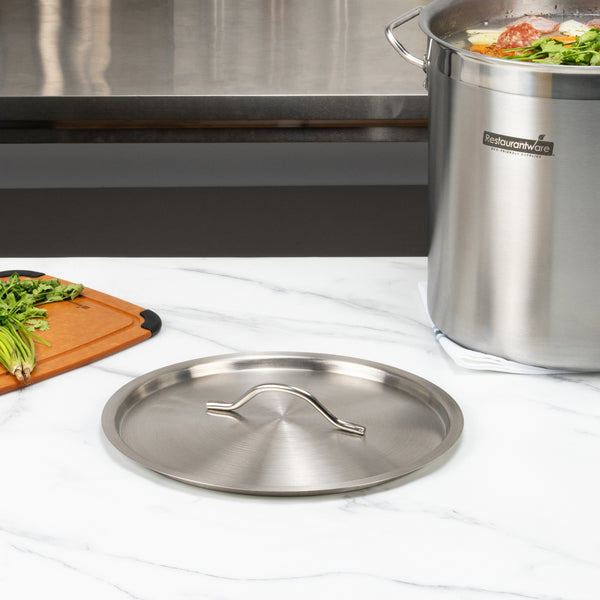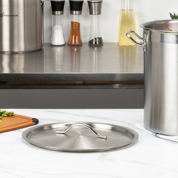 Cover your delicious meals with our Met Lux Stainless Steel Sauce Pan Lids. This mirror-finished stainless steel sauce pan lid is made to fit atop our 21-quart stainless steel sauce pan (SKU: RWT0014). Built with an easy-to-grip handle, this pot lid is easy to lift to serve or stir dishes inside the pot easily. This sauce pan lid, made of stainless steel, ensures food stays hot during and after cooking. Ensuring a dependable performance, this stainless steel pot lid lasts a long time. This sauce pan lid measures 11.8 inches in diameter. Sold in a 1 count box. Saucepans are available and sold separately.