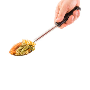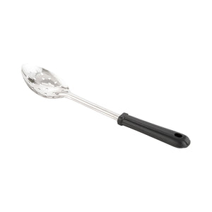 STAINLESS STEEL SERVING SPOON - PERFORATED, WITH BLACK PLASTIC HANDLE