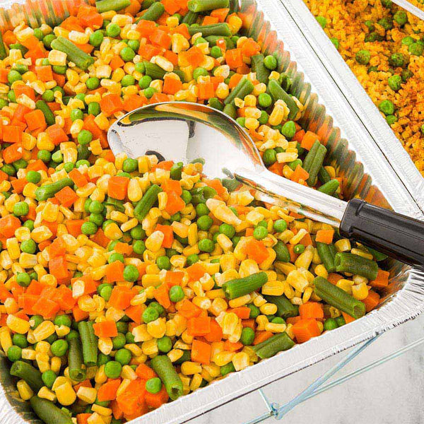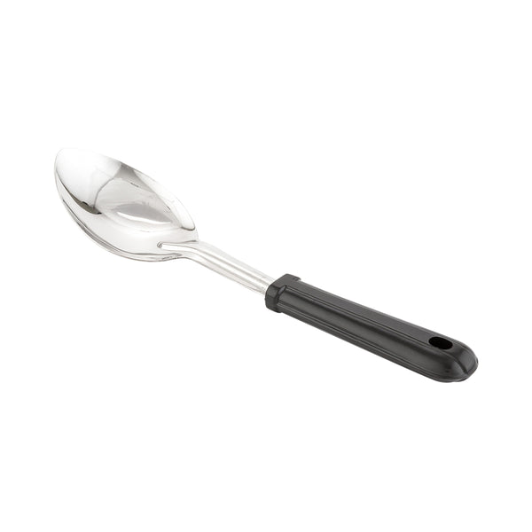 Stir and serve sauces, side dishes, entrees, and more with this Met Lux Solid Serving Spoon with Black Plastic Handle. Designed with a molded plastic handle, this stainless steel serving spoon enables a secure grip for efficient and comfortable use. The compact size makes this all-purpose serving utensil great for serving alongside buffet serving trays, or for quickly plating dishes in your restaurant's kitchen. Made from high-quality stainless steel, this small serving spoon is durable and rust-resistant. Ideal for restaurants, hotels, catering companies, and other foodservice establishments, this serving spoon is built to withstand long-term commercial use. Each of these basting spoons measures 11 inches in length. Shipped in a 1 count box.